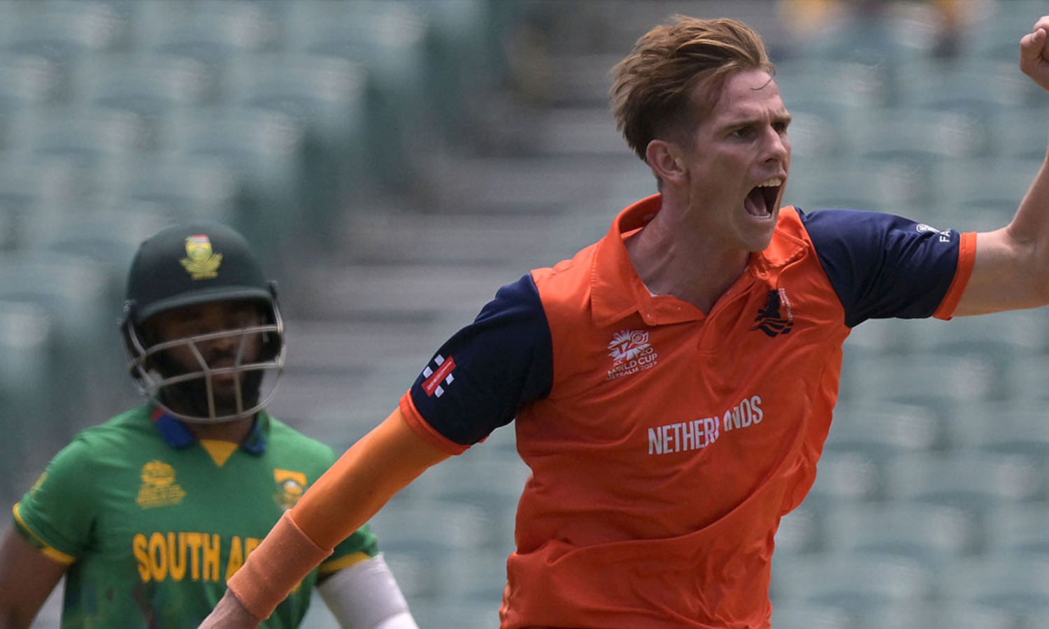 25 റൺസ് നേടിയ റിലീ റൂസ്സോയാണ് ദക്ഷിണാഫ്രിക്കയുടെ ഉയർന്ന സ്കോർ നേടിയ ബാറ്റർ. ബാവുമ, ഹെൻട്രിച്ച് ക്ലാസൻ എന്നിവർ മാത്രമാണ് റൂസ്സോക്ക് പുറമേ 20 കടന്നത്. മൂന്നു വിക്കറ്റ് വീഴ്ത്തിയ ബ്രാൻഡൻ ഗ്ലോവറും രണ്ടു വിക്കറ്റ് വീതം വീഴ്ത്തിയ ഫ്രെഡ് ക്ലാസ്സനും ബാസ് ഡെ ലീഡിയുമാണ് ദക്ഷിണാഫ്രിക്കയുടെ സെമി സ്വപ്നം തകർത്തത്. പോൾ വാൻ മീകേരൻ ഒരു വിക്കറ്റ് നേടി.