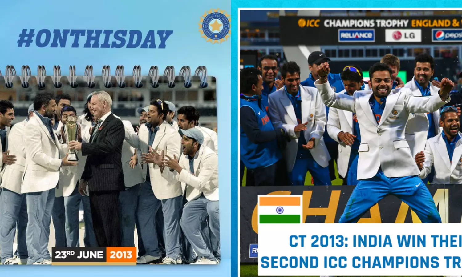 2013 ജൂൺ 23നാണ് ധോണിപ്പട ചാമ്പ്യൻസ് ട്രോഫി നേടിയത്
