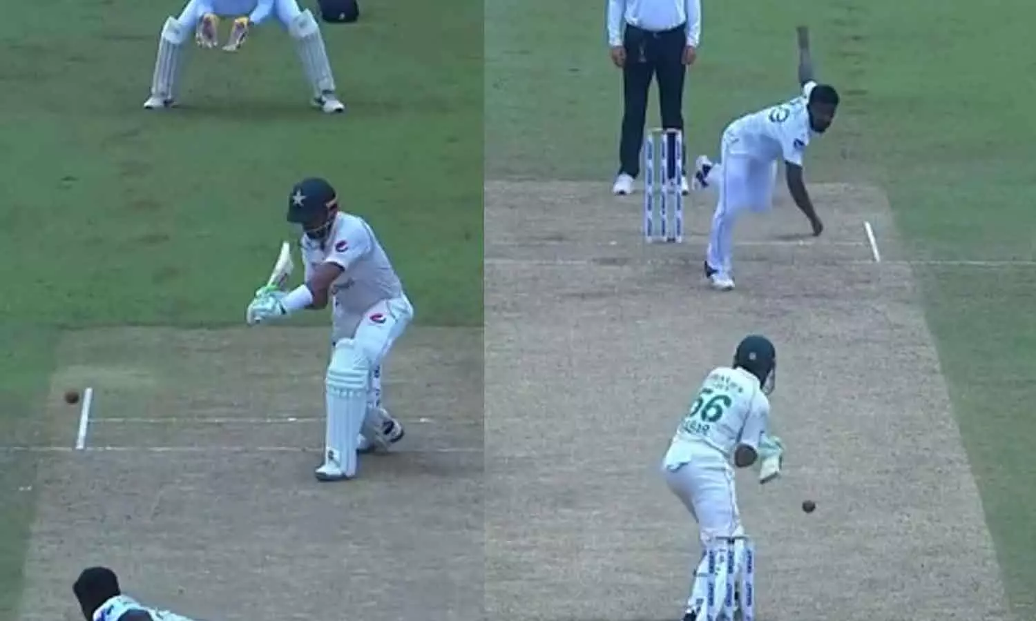 രണ്ട് ദിനവും അഞ്ച് വിക്കറ്റും പാകിസ്താന്റെ കയ്യിലുണ്ട്. അതേസമയം മത്സരത്തിൽ പാക് നായകൻ ബാബർ അസമിന്റെ ഒരു ഷോട്ടാണ് സമൂഹമാധ്യമങ്ങളിൽ ചർച്ചയാകുന്നത്. അസിത ഫെർണാണ്ടോയാണ് ബൗളർ. പതിവ് രീതിയിൽ ഓഫ്സൈഡ് ലക്ഷ്യമാക്കിയായിരുന്നു പന്ത് വന്നത്. പന്തിനെ ലക്ഷ്യമിട്ട് ബാബർ ബാറ്റ് ഉയർത്തി. പിന്നീടാണ് ട്വിസ്റ്റ്, ഉയർത്തിയ ബാറ്റ് 'വലിക്കുന്നതിനിടെ' പന്ത് ബൗണ്ടറിയിലേക്ക് പോയി. ഫസ്റ്റ് സ്ലിപ്പിനും ഗലിയിലൂടെയും പന്ത് ബൗണ്ടറി വര തൊടുകയായിരുന്നു.