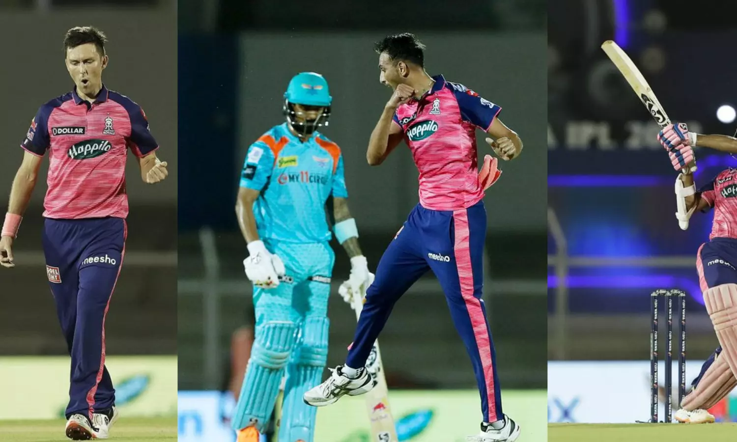 ജേസൺ ഹോൾഡറിന്റെയും(1), ദുഷ്മന്ത് ചമീരയുടെയും(0) വിക്കറ്റ് ഒബെഡ് മക്കേയ്യും വീഴ്ത്തി. ഹോൾഡറെ സഞ്ജുവിന്റെ കയ്യിലെത്തിച്ചപ്പോൾ ചമീരയെ ബൗൾഡാക്കുകായായിരുന്നു. നേരത്തെ രാജസ്ഥാൻ റോയൽസ് ഓപ്പണർ യശ്ശ്വസി ജയ്സ്വാളും നാലാമതിറങ്ങിയ ദേവ്ദത്ത് പടിക്കലും തകർത്തടിച്ചതോടെയാണ് ലഖ്നൗ സൂപ്പർ ജയൻറ്സിന് 179 റൺസ് വിജയലക്ഷ്യം നൽകിയിരുന്നത്. 29 പന്തിൽ ആറു ഫോറും ഒരു സിക്സുമടക്കം 41 റൺസാണ് ജയ്സ്വാൾ നേടിയത്. ദേവ്ദത്ത് പടിക്കൽ 18 പന്തിൽ 39 റൺസ് അടിച്ചുകൂട്ടി. അഞ്ചു ഫോറും രണ്ടും സിക്സും സഹിതമായിരുന്നു ഈ റൺവേട്ട. എന്നാൽ രവി ബിഷ്ണോയിയുടെ പന്തിൽ ക്രൂണാൽ പാണ്ഡ്യ പിടിച്ചതോടെ പടിക്കലിന്റെ പോരാട്ടം നിലച്ചു.ഓപ്പണറും രാജസ്ഥാന്റെ റൺമെഷീനുമായ ജോസ് ബട്ലർ കേവലം രണ്ടു റൺസുമായി തിരിച്ചുനടന്നപ്പോഴാണ് ജയ്സ്വാൾ അറിഞ്ഞുകളിച്ചത്. ഐപിഎൽ റൺവേട്ടക്കാരിൽ ഒന്നാമതുള്ള ബട്ലർ ആവേശ് ഖാന്റെ പന്തിൽ ബൗൾഡാകുകയായിരുന്നു.