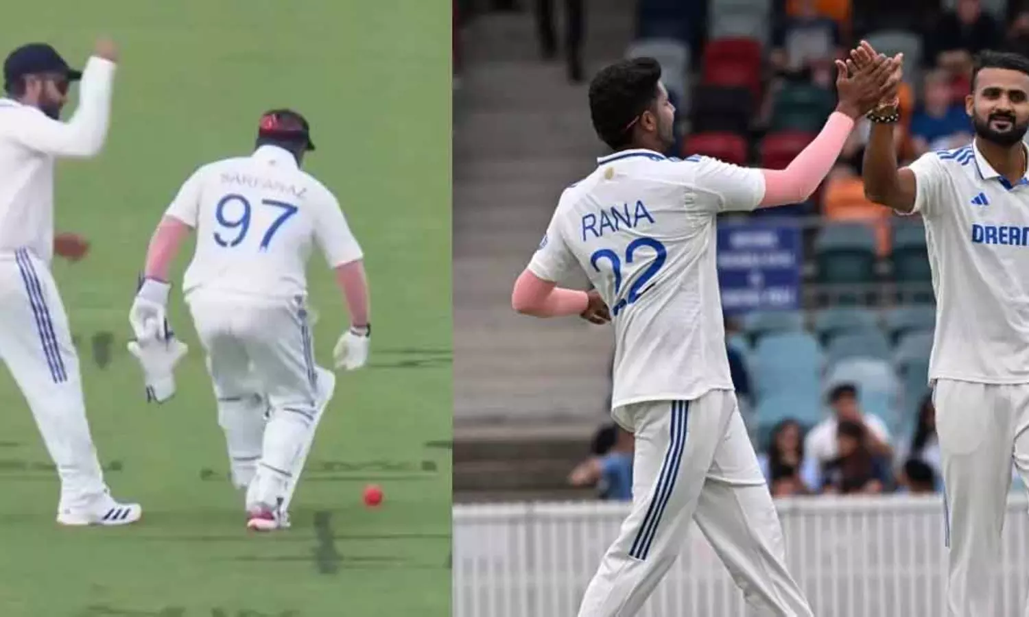 വിക്കറ്റ് കീപ്പറുടെ റോളിൽ സർഫറാസ് ഖാൻ; പന്ത് കൈവിട്ടതോടെ 'കൈവെച്ച്' രോഹിത് ശർമ-വീഡിയോ