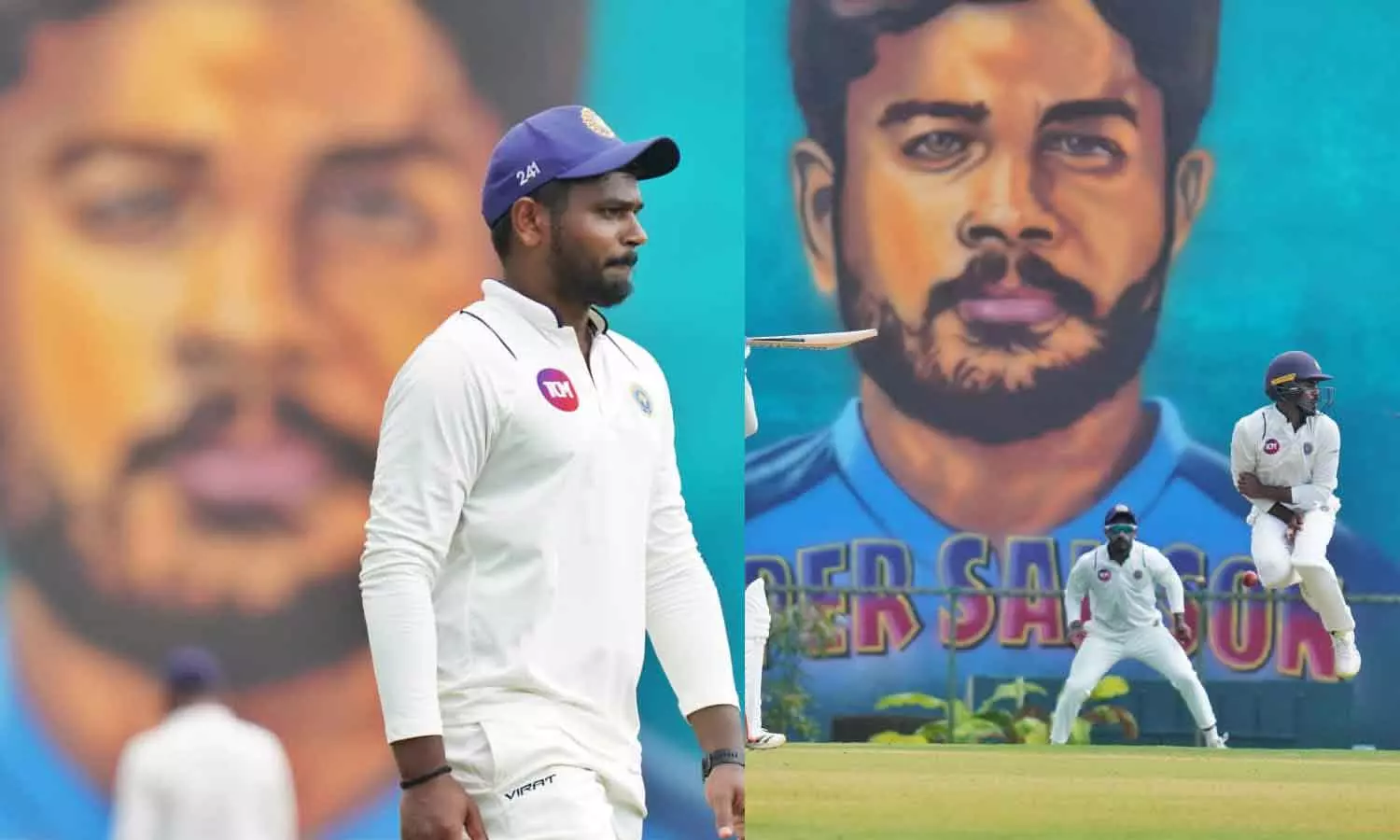 ഫോട്ടോക്ക് താഴെ സൂപ്പർ സാംസൺ എന്നും എഴുതിയിട്ടുണ്ട്. നിരവധി പേരാണ് ഈ ചിത്രം പങ്കുവെക്കുന്നത്. ഈ പെയിന്റിങ് പശ്ചാത്തലമായി വരുന്ന രീതിയിൽ സഞ്ജു ഗ്രൗണ്ടിൽ നിൽക്കുന്ന ചിത്രമാണ് പലരും പങ്കുവെക്കുന്നത്. സീസണിൽ ആദ്യമായാണ് കേരളം ഹോംഗ്രൗണ്ടിൽ മത്സരിക്കാനെത്തുന്നത്. കേരളത്തിന്റെ മൂന്നാം മത്സരമാണ് ഹോംഗ്രൗണ്ടിൽ നടക്കുന്നത്. ആദ്യ മത്സരം റാഞ്ചിയിലും രണ്ടാം മത്സരം ജയ്പൂരിലുമായിരുന്നു. റാഞ്ചിയിൽ ജാർഖണ്ഡിനെതിരായ മത്സരമായിരുന്നു നടന്നിരുന്നത്. അതിൽ കേരളം 85 റൺസിന്റെ ജയം ആഘോഷിച്ചിരുന്നു.