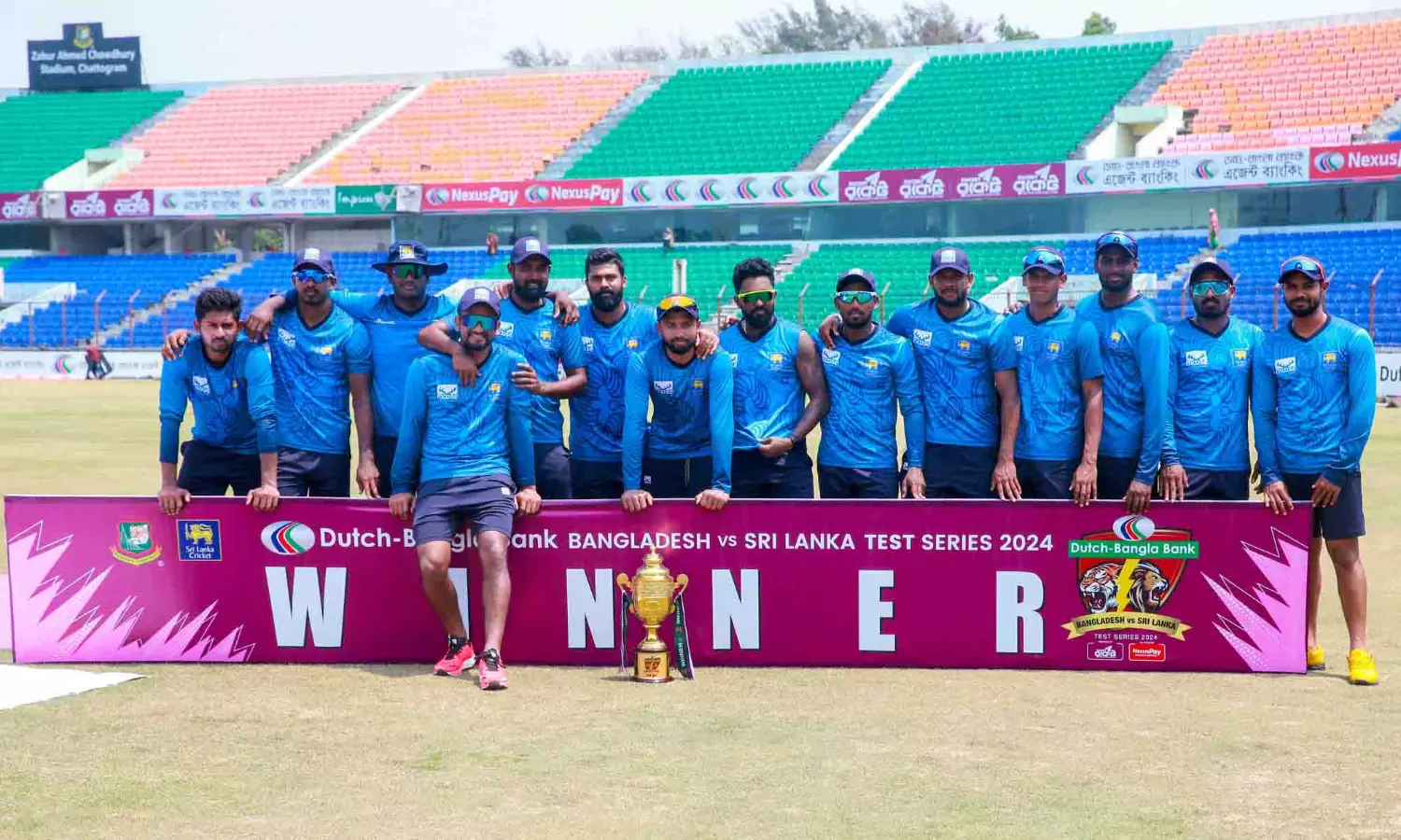 ഇന്ത്യ പാകിസ്താൻ, ഓസ്ട്രേലിയ ഇംഗ്ലണ്ട്.. ക്രിക്കറ്റിലെ പരമ്പരാഗത വൈരികൾ ആരെന്ന് ചോദിച്ചാൽ ഉയരുന്ന മറുപടികൾ ഇതെല്ലാമായിരുന്നു. എന്നാൽ ഇതിനെയെല്ലാം വെല്ലുന്ന രീതിയിലാണ് ബംഗ്ലദേശ് ശ്രീലങ്ക കുടിപ്പക വളരുന്നത്. ബംഗ്ലദേശിനെതിരെയുള്ള ടെസ്റ്റ് പരമ്പര നേടിയതിന് പിന്നാലെ ശ്രീലങ്കൻ താരങ്ങൾ പരിശീലന ജഴ്സിയിട്ട് ട്രോഫി വാങ്ങിയതാണ് ഏറ്റവും പുതിയ വാർത്ത. ബംഗ്ലദേശുമായുള്ള പരമ്പര തങ്ങൾക്ക് ഒരു പരിശീലന മത്സരത്തിന്റെ മാത്രം ലാഘവമേയുള്ളൂവെന്ന് ശ്രീലങ്ക പ്രതീകാത്മകമായി കാണിച്ചതാണെന്നാണ് പരക്കേയുള്ള സംസാരം. ശ്രീലങ്കൻ ടീമിലെ എല്ലാവരും പരിശീലന ജഴ്സിയണിഞ്ഞാണ് കപ്പ് വാങ്ങാൻ അണിനിരന്നത്. ആദ്യ ടെസ്റ്റിൽ 328 റൺസിന്റെയും രണ്ടാം ടെസ്റ്റിൽ 192റൺസിന്റെയും കൂറ്റൻ വിജയങ്ങളാണ് ലങ്ക നേടിയത്.