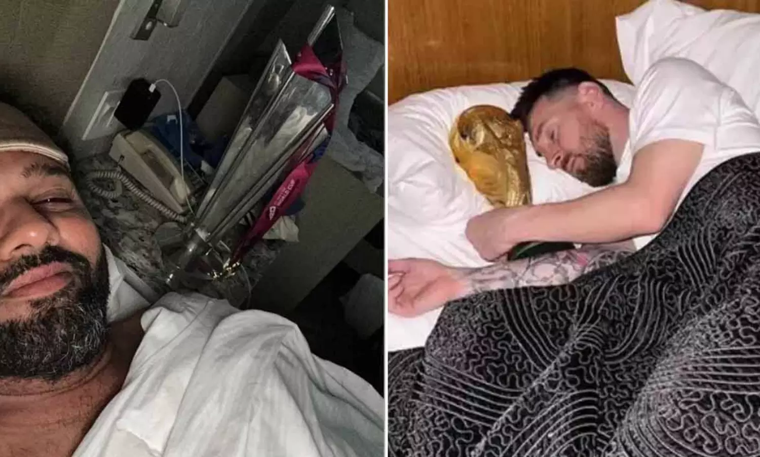 ആഗ്രഹിച്ച കിരീടം, അന്നു മെസിയെങ്കിൽ ഇന്ന് രോഹിത്; കിരീടത്തിനൊപ്പം ഉറക്കമുണർന്ന് ഹിറ്റ്മാൻ