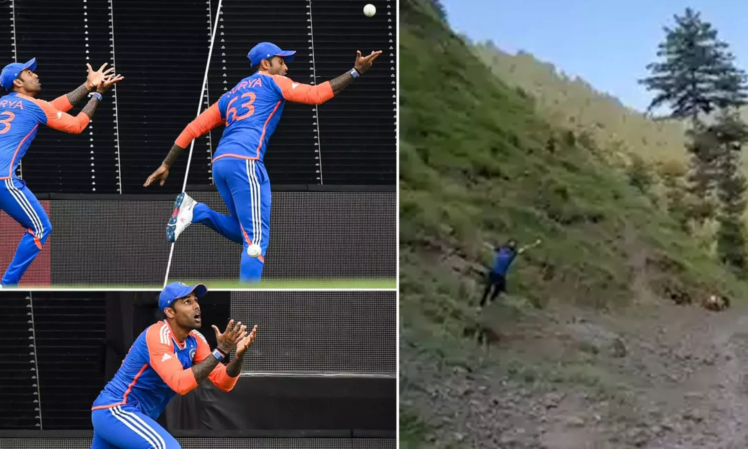 ന്യൂഡൽഹി: കഴിഞ്ഞ ടി20 ലോകകപ്പ് ഫൈനലിൽ ദക്ഷിണാഫ്രിക്കൻ താരം ഡേവിഡ് മില്ലറുടെ ക്യാച്ച് ബൗണ്ടറിലൈനിനരികെ അവിശ്വസനീയമാംവിധം കൈപിടിയിലൊതുക്കിയ സൂര്യകുമാർ യാദവിന്റെ ദൃശ്യങ്ങൾ ഇന്നും ആരാധകരുടെ മനസിലുണ്ടാകും. ലോക കിരീടം കൂടിയാണ് ആ ക്യാച്ചിലൂടെ ഇന്ത്യ കൈപിടിയിലൊതുക്കിയത്. ഇപ്പോഴിതാ സമാനമായൊരു ക്യാച്ച് സമൂഹ മാധ്യമങ്ങളിൽ ശ്രദ്ധനേടിയിരിക്കുന്നു.