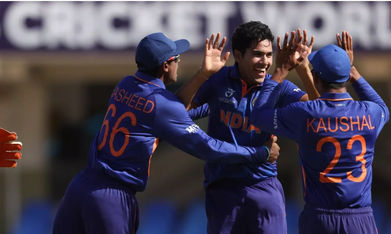 പേസ് ബൗളര്മാരായ രാജ് ഭവയുടേയും രവികുമാറിന്റേയും മിന്നും പ്രകടനങ്ങളാണ് ഇംഗ്ലണ്ടിനെ 189 റണ്സില് ഒതുക്കിയത്