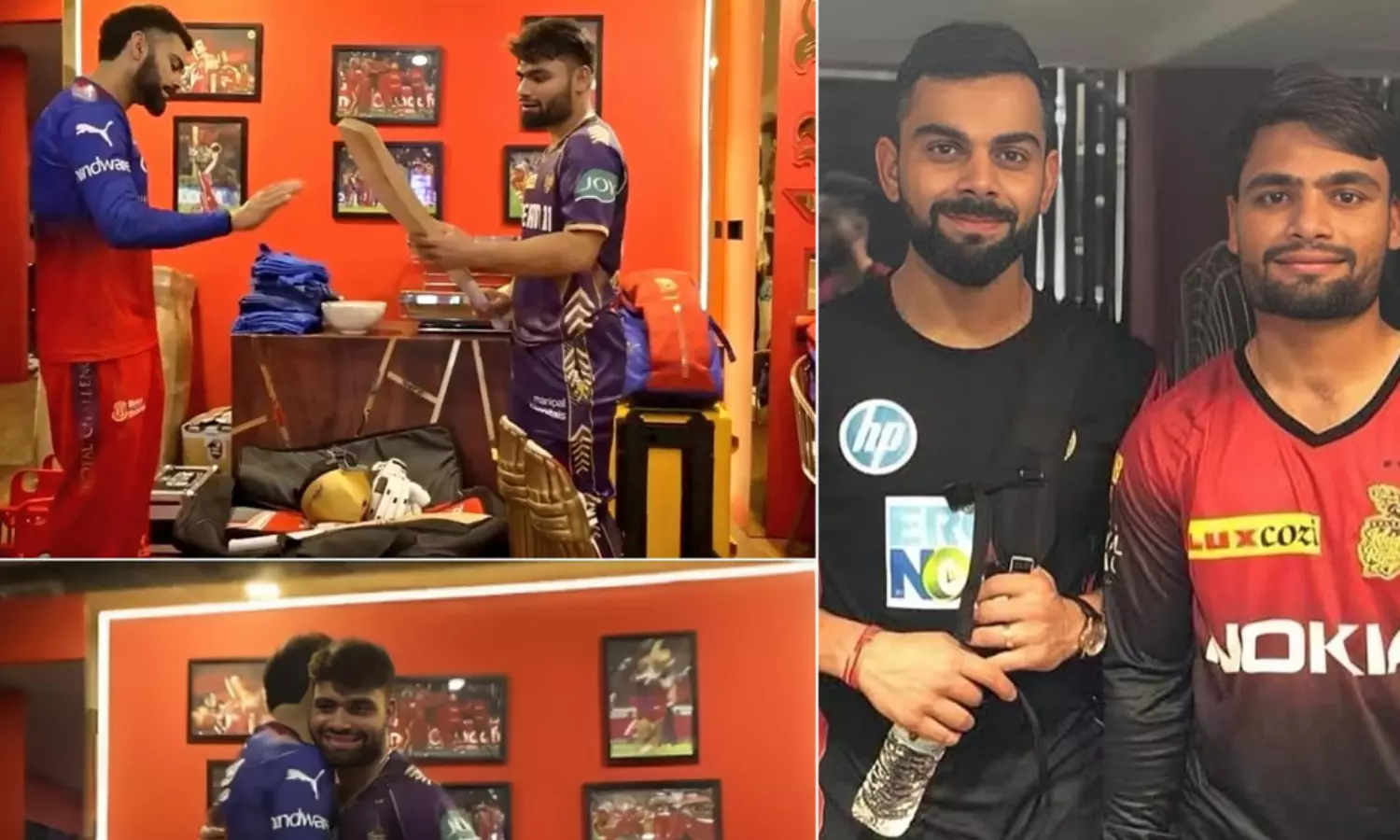 ഇന്നലെ റോയല് ചലഞ്ചേഴ്സ് ബെംഗളൂരു-കൊല്ക്കത്ത മത്സരത്തിന് ശേഷം റിങ്കു സിങും വിരാട് കോഹ്ലിയും തമ്മിലുള്ള സൗഹൃദമാണ് ഇപ്പോള് സമൂഹ മാധ്യമങ്ങളില് വൈറലായത്. യുവതാരത്തിന് ബാറ്റ് സമ്മാനമായി നല്കിയിരിക്കുകയാണ് വിരാട്. മത്സരശേഷം ഡ്രസിങ് റൂമില് വെച്ചാണ് കോഹ്ലി റിങ്കു സിങ്ങിന് ബാറ്റ് സമ്മാനമായി നല്കിയത്. തന്റെ ഇന്സ്റ്റഗ്രാം സ്റ്റോറിയിലൂടെ റിങ്കുസിങ് കോഹ്ലിക്ക് നന്ദി പറയുകയും ചെയ്തു.