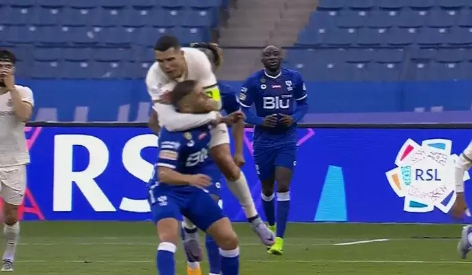 അല്ഹിലാല് താരത്തിന് റോണോയുടെ 'ഹെഡ് ലോക്ക്'; മഞ്ഞക്കാര്ഡ്