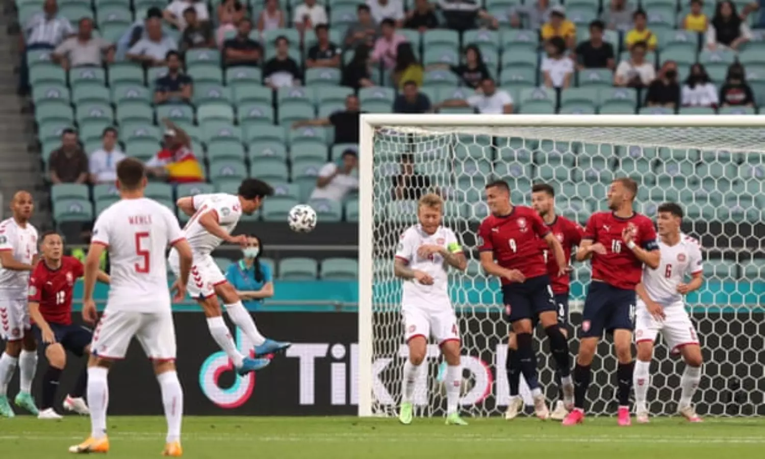 യൂറോകപ്പിലെ ക്വാർട്ടർ പോരാട്ടത്തിൽ ചെക്ക് റിപബ്ലിക്കിനെ തകർത്ത് ഡെന്മാർക്ക് സെമി ഫൈനലിൽ. ബാകു ഒളിംപിക് സ്റ്റേഡിയത്തിൽ തുല്യശക്തികൾ ഏറ്റുമുട്ടിയ പോരാട്ടത്തിൽ ഒന്നിനെതിരെ രണ്ടു ഗോളിനായിരുന്നു ഡാനിഷ് വിജയം. തോമസ് ഡെലാനി, കാസ്പർ ഗോൽബർ എന്നിവരാണ് ഡെന്മാർക്കിനുവേണ്ടി ഗോൾ നേടിയത്. മുന്നേറ്റനിര താരം പാട്രിക് ഷിക്ക് ആണ് ചെക്ക് റിപബ്ലിക്കിന്റെ ആശ്വാസ ഗോൾ നേടിയത്.