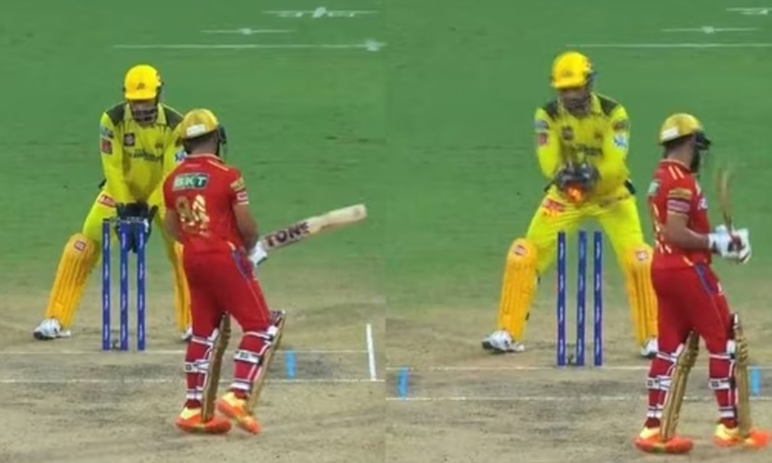 മത്സരത്തിന്റെ ഒമ്പതാം ഓവറിലാണ് സംഭവം. രവീന്ദ്ര ജഡേജയെറിഞ്ഞ പന്ത് നേരിടാനായി ക്രീസിന് വെളിയിലേക്ക് സ്റ്റെപ്പ് ഔട്ട് ചെയ്ത പ്രഭ് സിംറാന് പക്ഷെ പിഴച്ചു. പന്ത് ധോണിയുടെ കയ്യിൽ. ഒരൽപ്പ നേരം പന്ത് കയ്യിൽ വച്ച ധോണി തന്റേതായ ശൈലിയിൽ കുറ്റി തെറിപ്പിച്ചു.