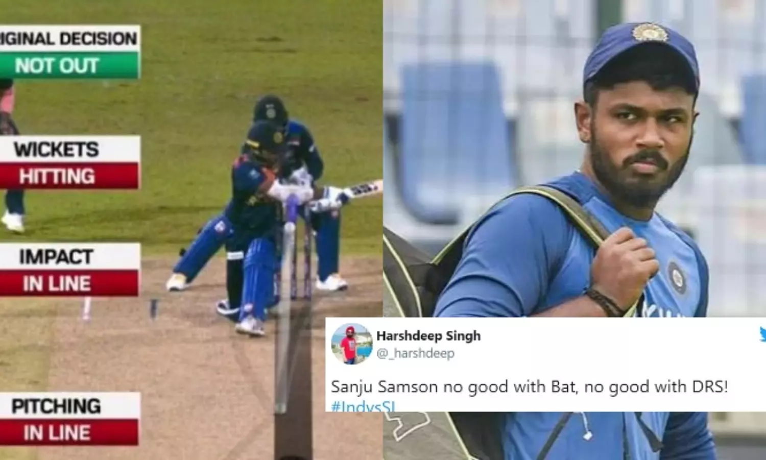 Sanju Samson is going to get brutal spanks from Kuldeep in the dressing room after the game. 😂#SLvsIND #INDvsSL pic.twitter.com/iECh8AFlwQ— PradeepK (@thecricketstory) July 28, ൨൦൨൧Sanju Samson can do nothing kick him out of the team. He can't bat, he can't keep, he can't check take right calls while DRS. Wost player for India.