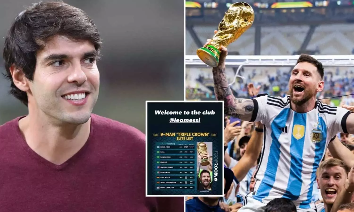 Summary: Brazil legend Kaka welcomes Argentine legend Lionel Messi to the 'Triple Crown' club, an elite group of players who have won the World Cup, the Champions League and at least one Ballon d'Or