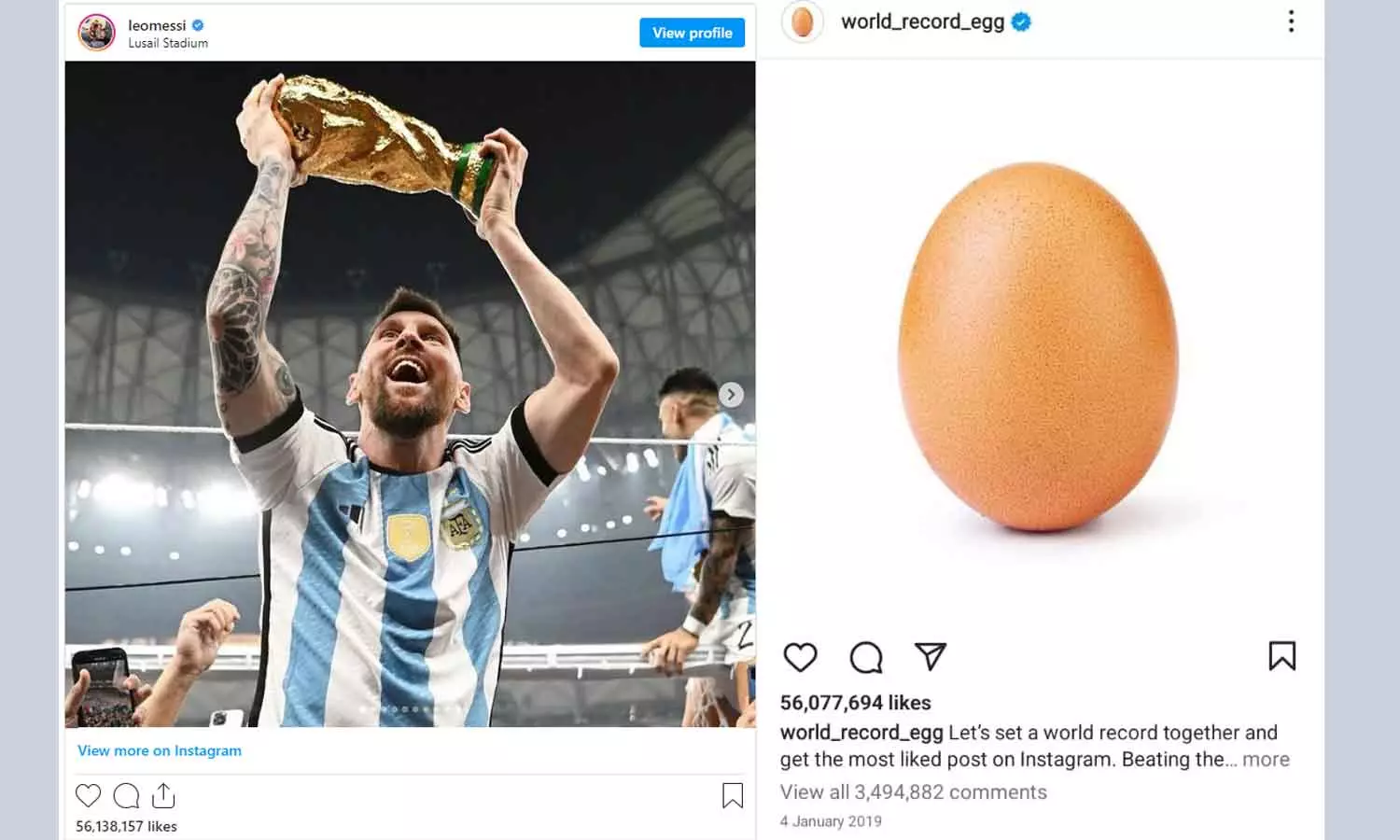 2019 ജനുവരി നാലിന് 'വേൾഡ് റെക്കോർഡ് എഗ്ഗ്' എന്ന എക്കൗണ്ടിൽ പോസ്റ്റ് ചെയ്ത മുട്ടയുടെ ഫോട്ടോയാണ് ഇതുവരെ ഏറ്റവും കൂടുതൽ ലൈക്ക് നേടിയിരുന്നത്. 56,134,882 ലെക്കുകളാണ് ഇതുവരെ ഈ ചിത്രം നേടിയത്. എന്നാൽ മെസ്സി ഒരു ദിവസം മുമ്പ് പോസ്റ്റ് ചെയ്ത ഫോട്ടോ ഇതുവരെ 57,040,067 ലൈക്കുകൾ നേടി.