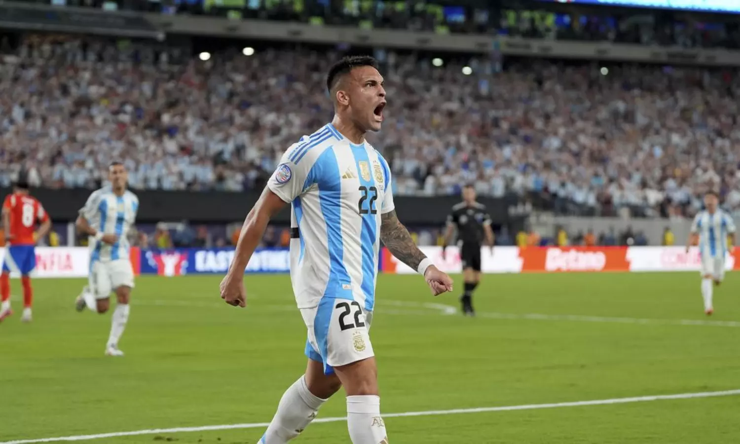 പന്ത് കൈവശം വെച്ചിട്ടും നിരന്തര മുന്നേറ്റം നടത്തിയിട്ടും ചിലെയുടെ വലയിലേക്ക് ഗോളുതിർക്കാനാകാതെ അർജൻറീന വിഷമിച്ച നേരം. തുടർച്ചയായ രണ്ടാം മത്സരത്തിലും ലൗതാരോ മാർട്ടിനസ് തന്നെ രക്ഷകനായി അവതരിച്ചു. 88ാം മിനിൽ മെസ്സിയെടുത്ത കോർണറിൽ നിന്നും വീണുകിട്ടിയ പന്ത് മാർക്ക് ചെയ്യാതെ നിന്ന മാർട്ടിനസ് വലയിലേക്ക് തൊടുക്കുകയായിരുന്നു. ഒരൊറ്റ ഗോളിെൻറ ബലത്തിൽ തുടർച്ചയായ രണ്ടാം ജയം സ്വന്തമാക്കിയ അർജൻറീന ക്വാർട്ടറിലേക്ക് കടന്നു.