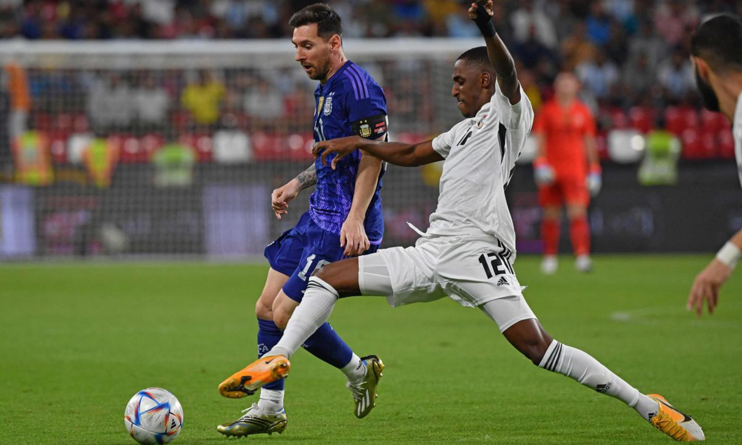 മുഹമ്മദ് ബിൻ സായിദ് സ്റ്റേഡിയത്തിൽ കളിയുടെ തുടക്കം മുതൽ അർജന്റീനയാണ് കളം നിറഞ്ഞു കളിച്ചത്.നിരന്തരമായ അർജന്റീനിയൻ മുന്നേറ്റങ്ങളിൽ യു.എ.ഇ പ്രതിരോധം ആടിയുലഞ്ഞു. കളിയുടെ 17ാം മിനിറ്റിൽ അർജന്റീന ആദ്യ ഗോൾ കണ്ടെത്തി.