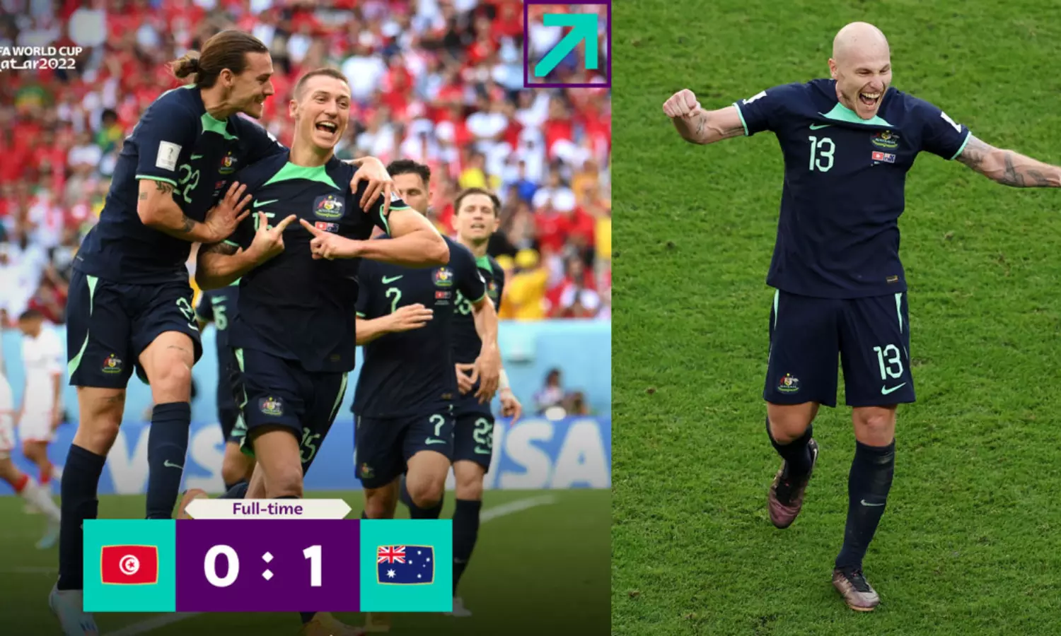 മത്സരത്തിൽ മിച്ചൽ ഡ്യൂക്കിന്റെ തകർപ്പൻ ഹെഡ്ഡർ ഗോളിലൂടെയാണ് ആസ്ത്രേലിയയുടെ വിജയം. ഗ്രേഗ് ഗുഡ്വിന്റെ ഷോട്ട് ഡിഫ്ളക്ടായി വന്ന ക്രോസിൽ നിന്ന് ഡ്യൂക്ക് ടുണീഷ്യൻ വല കുലുക്കുകയായിരുന്നു. ഇതോടെ ടിം കാഹിലിന് ശേഷം ഹെഡ്ഡറിലൂടെ ലോകകപ്പ് ഗോൾ നേടുന്ന രണ്ടാം ആസ്ത്രേലിയൻ താരമായി മിച്ചൽ ഡ്യൂക്ക് മാറി. 2010ൽ സെർബിയക്കെതിരെയും 2014ൽ ചിലിക്കെതിരെയും ടിം കാഹിൽ ഹെഡ്ഡർ ഗോൾ നേടിയിരുന്നു. അൽജനൂബ് സ്റ്റേഡിയത്തിലാണ് മത്സരം നടന്നത്.