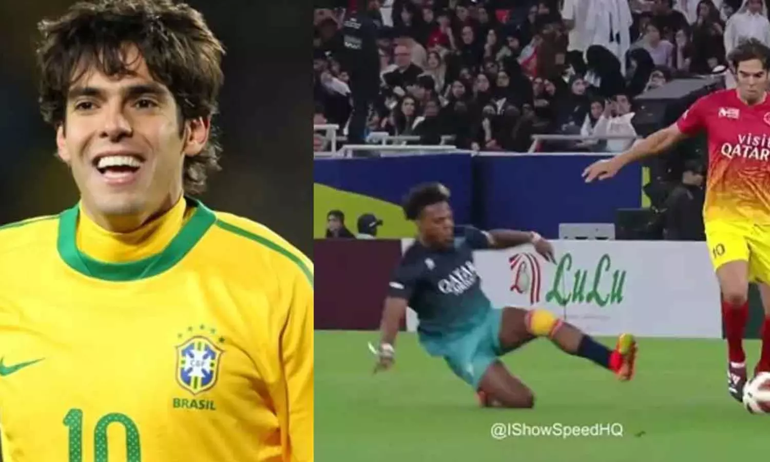 മാച്ചിൽ മുൻ എസി മിലാൻ താരത്തിന്റെ ഗോൾനേട്ടത്തോടൊപ്പം സമൂഹമാധ്യമങ്ങളിൽ ശ്രദ്ധേയമായ മറ്റൊരു നിമിഷം കൂടിയുണ്ടായിരുന്നു. പന്തുമായി മുന്നേറുന്നതിനിടെ പിറകിൽ നിന്ന് വേഗതയിലെത്തി എതിർതാരം കക്കയെ ടാക്ലിൽ ചെയ്തതാണ് വൈറലായത്. ഐ ഷോ സ്പീഡ് എന്നറിയപ്പെടുന്ന അമേരിക്കൻ യൂട്യൂബറാണ് നിയന്ത്രണം നഷ്ടമായി അപകടകരമാംവിധം ടാക്ലിങ് നടത്തിയത്. ഇതേ തുടർന്ന് കക്ക നിലതെറ്റി താഴെവീണു.