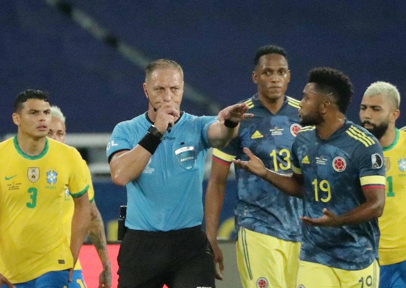 റഫറിയുടെ ദേഹത്ത് തട്ടി ബ്രസീലിന്റെ വിവാദ ഗോള്: റഫറിയെ സസ്പൻഡ് ചെയ്യണമെന്ന് കൊളംബിയ