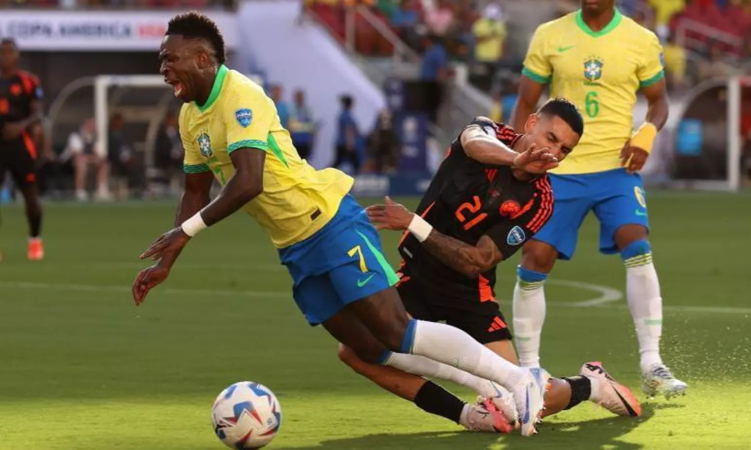 കാലിഫോർണിയയിലെ ലിവൈസ് സ്റ്റേഡിയത്തിൽ ഗ്രൂപ്പ് ഡിയിലെ നിർണായക മത്സരത്തിൽ കൊളംബിയയും ബ്രസീലും ഏറ്റുമുട്ടുന്നു. വിജയിക്കുന്നവർ ഗ്രൂപ്പ് ചാമ്പ്യൻമാരാകും. അങ്ങനെ കാത്തിരുന്ന പോരിന് അരങ്ങൊരുങ്ങി. 12ാം മിനുറ്റിൽ റാഫീഞ്ഞ്യയുടെ സുന്ദരമായ ഫ്രീകിക്ക് ഗോളിൽ ബ്രസീൽ മുന്നിലെത്തുന്നു. മത്സരത്തിലേക്ക് തിരിച്ചുവരാൻ കൊളംബിയ ശ്രമിച്ചുകൊണ്ടിരിക്കവേയാണ് 42ാം മിനുറ്റിൽ അത് സംഭവിക്കുന്നത്. കൊളംബിയൻ ബോക്സിലേക്ക് ഓടിക്കയറിയ വിനീഷ്യസിനെ കൊളംബിയൻ ഡിഫൻഡർ ഡാനിയൽ മുനോസ് വീഴ്ത്തുന്നു. ഒറ്റ നോട്ടത്തിൽ തന്നെ ക്ലിയർ പെനൽറ്റി.