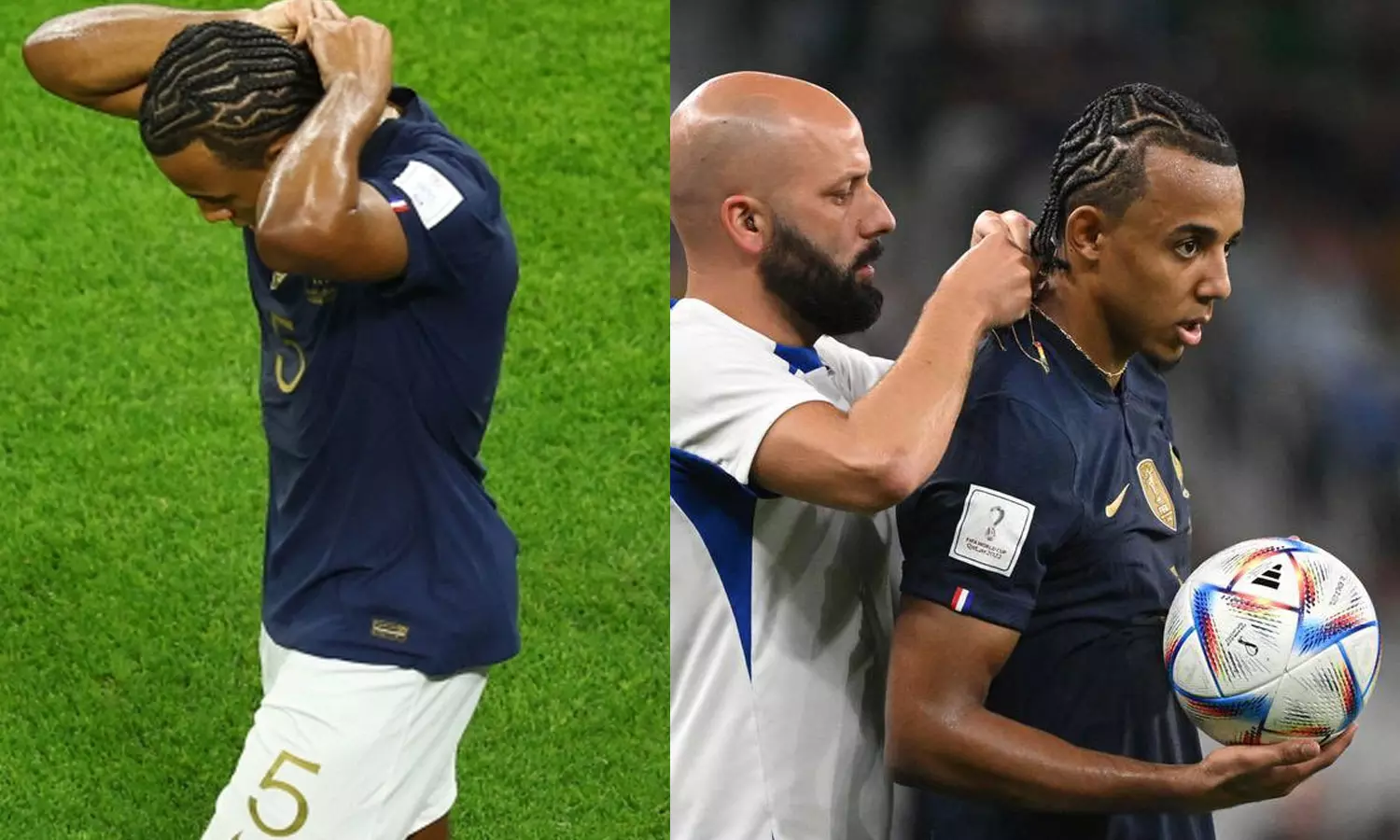 ദോഹ: ലോകകപ്പ് പ്രീക്വാര്ട്ടര് പോരാട്ടത്തില് പോളണ്ടിനെ തകര്ത്തെറിഞ്ഞതിന്റെ ആവേശത്തിലാണ് ഫ്രഞ്ച് പട. കിലിയന് എംബാപ്പെയുടെ തകര്പ്പന് പ്രകടനത്തിന്റെ മികവില് ഒന്നിനെതിരെ മൂന്ന് ഗോളിനായിരുന്നു നിലവിലെ ചാമ്പ്യന്മാരുടെ വിജയം. അതിനിടെ ഇന്നലെ നടന്ന മത്സരത്തില് ഫ്രഞ്ച് പ്രതിരോധ താരം ജൂള്സ് കൗണ്ടേ സ്വര്ണമാല ധരിച്ച് കളിക്കാനിറങ്ങിയത് വലിയ വിവാദത്തിനിടയാക്കിയിരുന്നു.