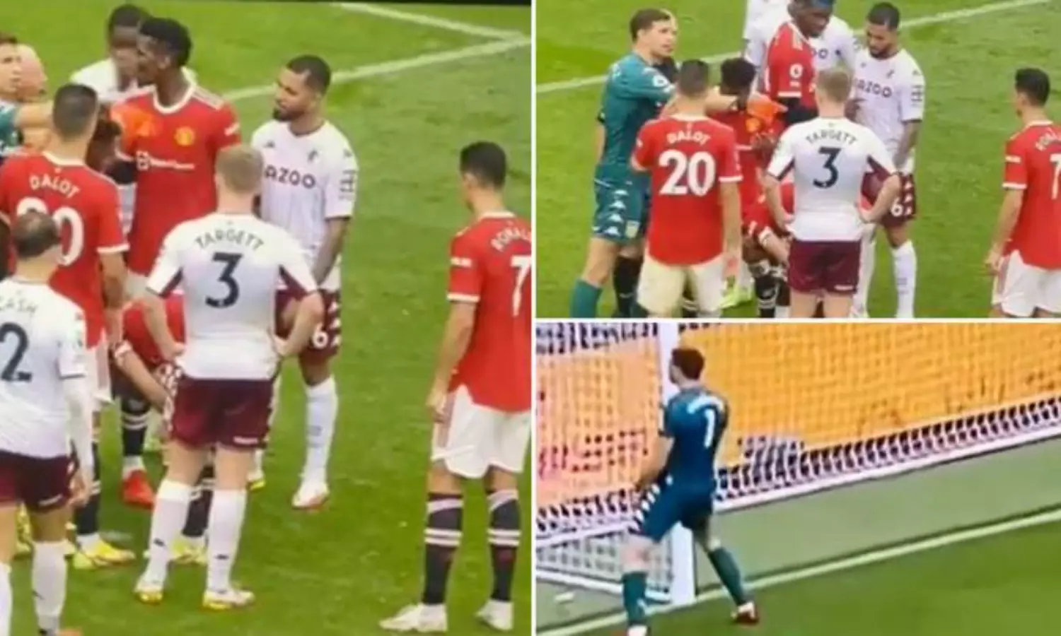 മാഞ്ചസ്റ്റർ യുണൈറ്റഡിന് പെനാൽറ്റി ലഭിച്ചതിന് പിന്നാലെ കിക്കെടുക്കുന്നതുമായി ബന്ധപ്പെട്ട് താരങ്ങൾ ചർച്ച നടത്തുന്നതിനിടെ വില്ല ഗോൾകീപ്പർ എമിലിയാനോ മാർട്ടിനസ് അങ്ങോട്ടേക്ക് ചെല്ലുകയും റൊണാൾഡോയോട് കിക്കെടുക്കാൻ വരാൻ പറയുകയുമായിരുന്നു. റോണോയുടെ നേരെ നോക്കി മാർട്ടിനസ് സംസാരിക്കുന്നതിനിടെ യുണൈറ്റഡ് താരങ്ങളായ ഡിയൊഗോ ഡാലറ്റ്, ഫ്രെഡ് എന്നിവർ മാർട്ടിനസിനെ അവിടെ നിന്ന് ഒഴിവാക്കാന് ശ്രമിക്കുകയായിരുന്നു. കവാനി ചെന്ന് താരത്തെ പോസ്റ്റിലേക്ക് മടക്കി അയക്കുകയായിരുന്നു. പെനാൽറ്റിക്കാര്യത്തിൽ മികച്ച റെക്കോർഡുള്ള ബ്രൂണോക്ക് ഇക്കുറി പിഴച്ചു. താരത്തിന്റെ ഷോട്ട് പുറത്തേക്ക് പാഞ്ഞു. ഇതോടെ മത്സരത്തിൽ സമനില നേടാനുള്ള സുവർണാവസരമാണ് യുണൈറ്റഡ് പാഴാക്കിയത്.