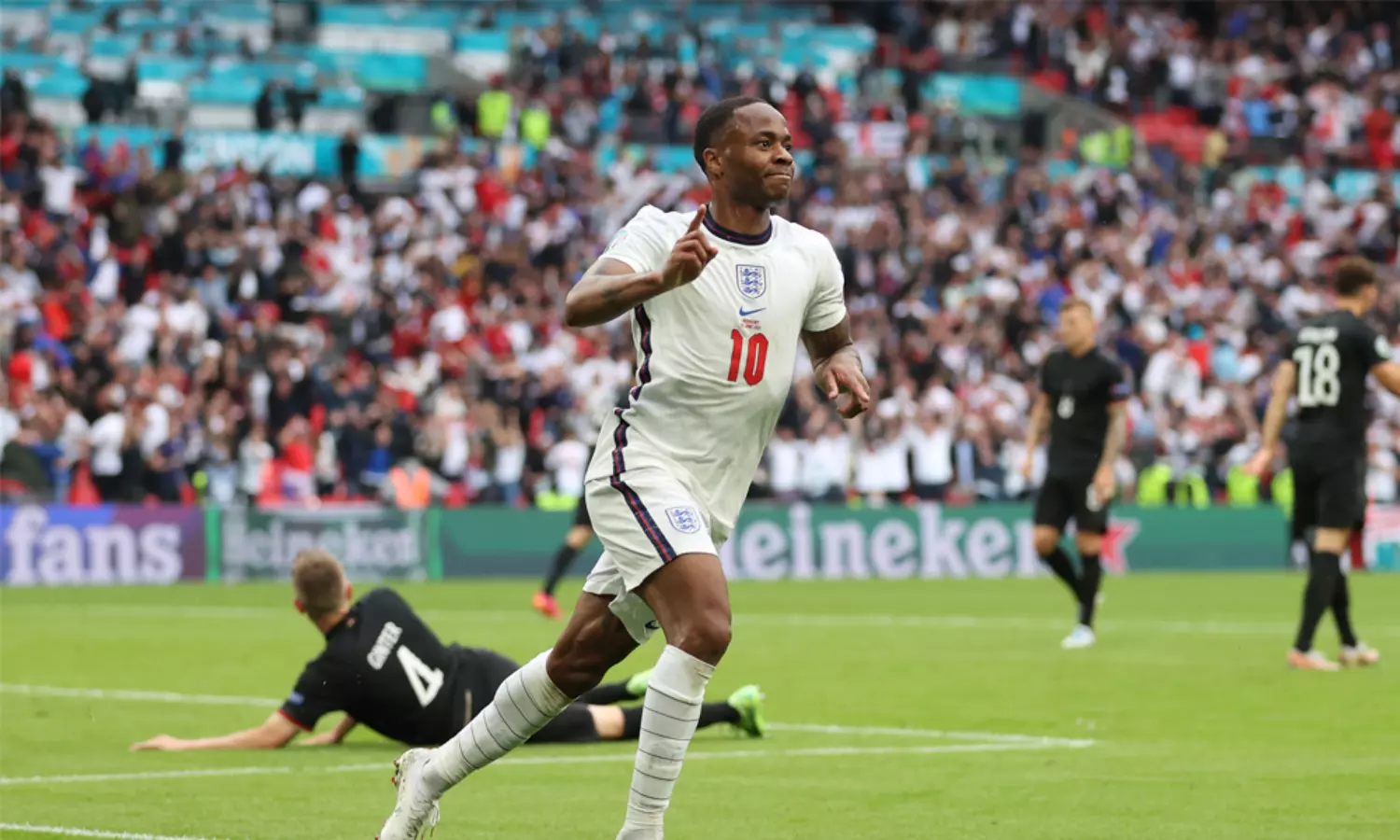 മത്സരത്തിന്റെ 75-ാം മിനിറ്റിലാണ് സ്റ്റെർലിങ്ങും ഹാരി കെയ്നും ഗ്രീലിഷും ലൂക്ക് ഷോയും ചേർന്നുള്ള മുന്നേറ്റത്തിലൂടെ ഇംഗ്ലണ്ട് ആദ്യം മുന്നിലെത്തിയത് ഗോളിൽ കലാശിച്ചത്. ഷോയുടെ പാസ് സ്റ്റെർലിങ് കൃത്യമായി വലയിലെത്തിക്കുകയായിരുന്നു.