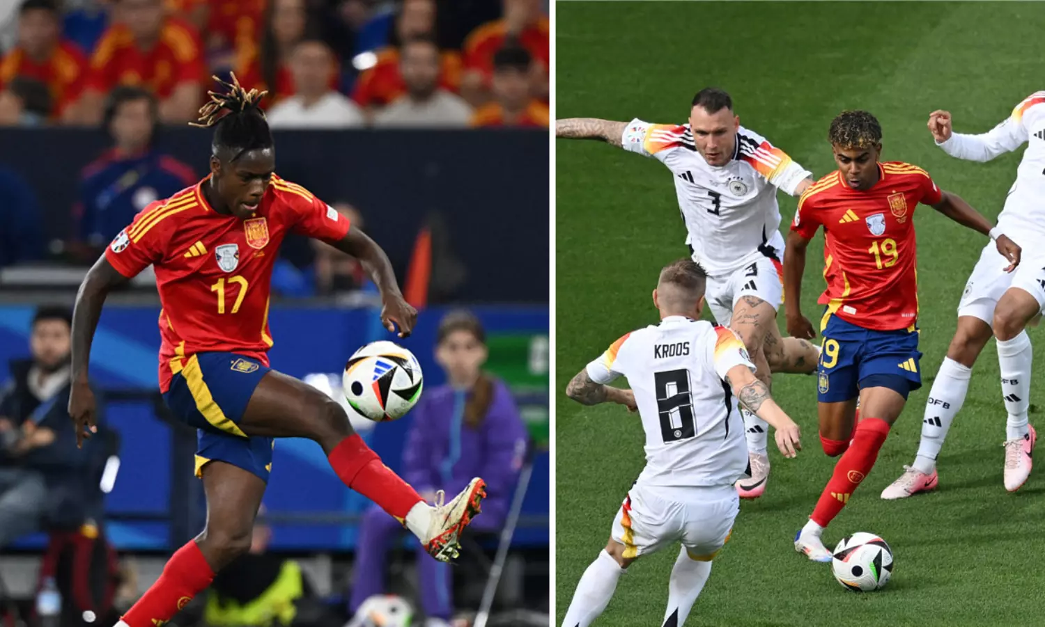 വലതുവിങിലൂടെ ചാട്ടുളി പോലെ കുതിച്ചു കയറുന്ന ലമീൻ യമാൽ. ഇടതുവിങിൽ അതിവേഗ മുന്നേറ്റത്തിൽ എതിർ ബോക്സിലേക്ക് ഇരമ്പിയെത്തുന്ന നിക്കോ വില്യംസ്. പരിശീലകൻ ലൂയിസ് ദെ ല ഫുവന്തെയുടെ കീഴിൽ സ്പെയിൻ പയറ്റുന്ന ഡയറക്ട് ഫുട്ബോളിന്റെ ചാലകശക്തികൾ ഈ രണ്ട് യങ് ബ്ലഡുകളാണ്. അതിവേഗ കുതിപ്പിനൊപ്പം ഡ്രിബ്ലിങ് മികവും കൃത്യതയാർന്ന ക്രോസുകളുമാണ് ഇരു വിങർമാരുടേയും പ്രത്യേകത. മധ്യനിരിയിൽ നിന്ന് റോഡ്രിയും പെഡ്രിയും നൽകുന്ന പന്തുകളുമായി കുതിച്ച് എതിർ ഗോൾമുഖത്ത് ദുരന്തംവിതക്കാൻ കെൽപുള്ള സ്പാനിഷ് ഇരട്ടകുഴൽ തോക്കുകൾ.