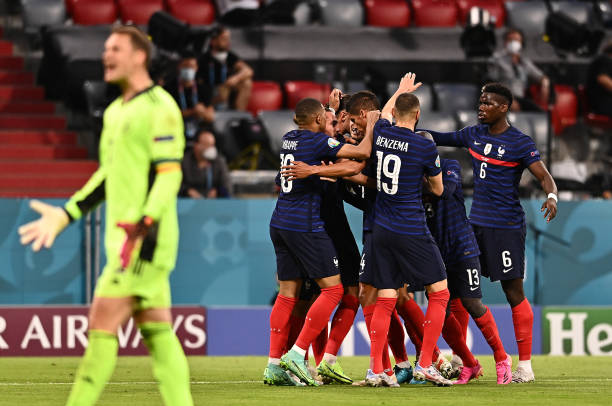 യൂറോകപ്പിലെ 'മരണഗ്രൂപ്പായ' ഗ്രൂപ്പ് എഫിലെ ആവേശപ്പോരിൽ ജർമനിയെ ഏകപക്ഷീയമായ ഒരു ഗോളിന് വീഴ്ത്തി ഫ്രാൻസ്. 20-ാം മിനുട്ടിൽ ജർമൻ പ്രതിരോധ താരം മാറ്റ്സ് ഹുമ്മൽസിന്റെ സെൽഫ് ഗോളാണ് മത്സരത്തിന്റെ ഗതി നിർണയിച്ചത്. രണ്ട് തവണ കൂടി ഫ്രാൻസ് പന്ത് വലയിലെത്തിച്ചെങ്കിലും എംബാപ്പെയുടെയും കരീം ബെൻസേമയുടെയും ഗോളുകൾ ഓഫ് സൈഡിൽ കുടുങ്ങി അസാധുവായി.