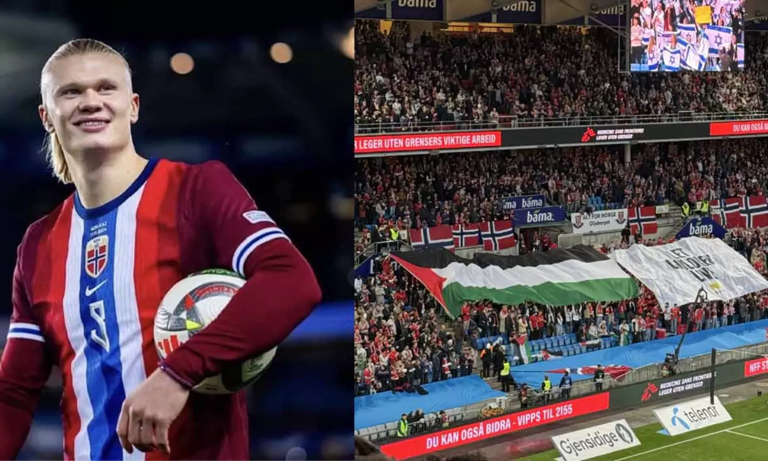 ഗസ്സയിലെ കൂട്ടക്കുരുതിക്കെതിരെ മൈതാനത്തിനകത്തും പുറത്തും ഇസ്രാലേയിനെതിരെ വൻ പ്രതിഷേധമാണ് നോർവീജിയൻ ആരാധകർ ഉയർത്തിയത്.