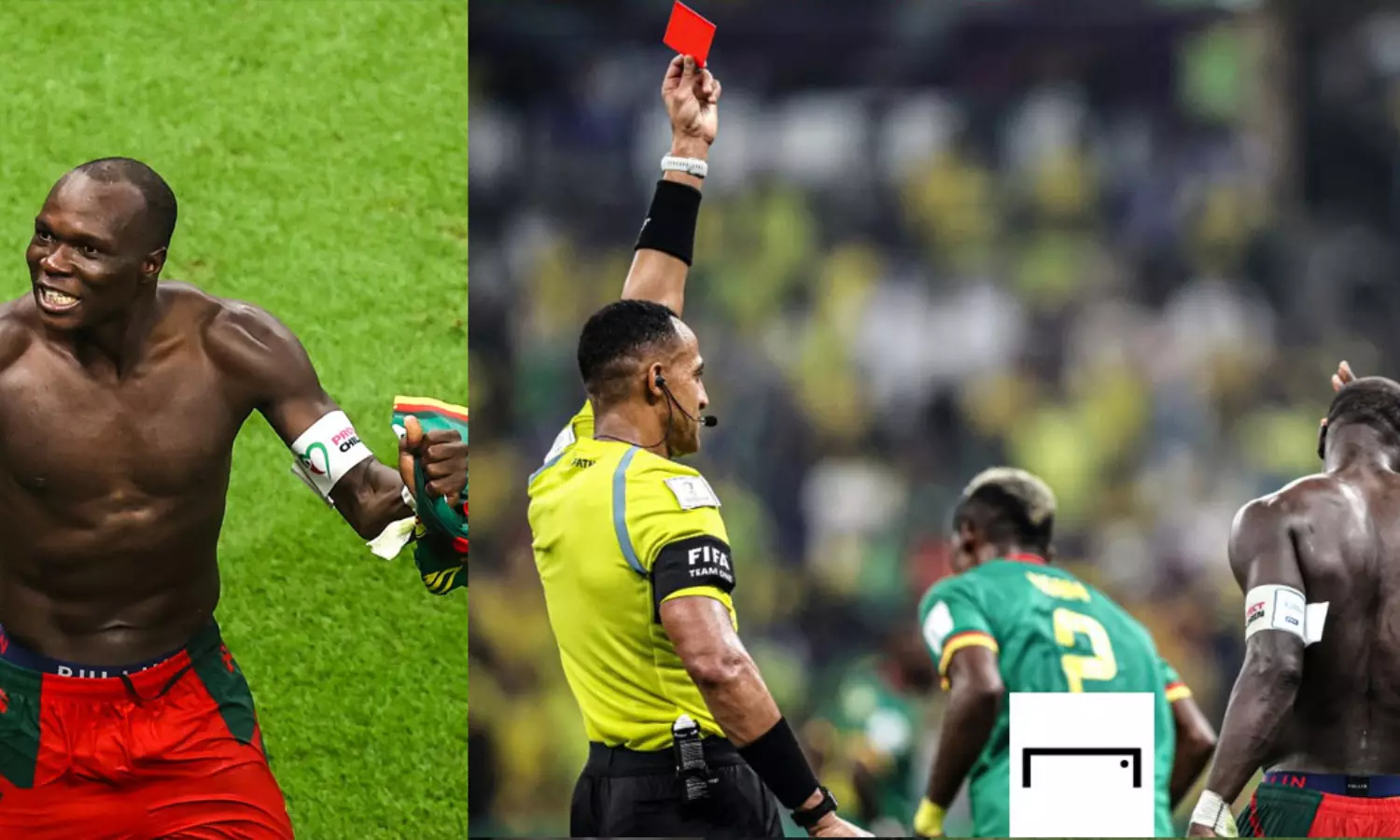 അധിക സമയം വരെ ഗോളടിക്കാൻ കഴിയാതിരിക്കുകയും ബ്രസീലിനെ ഗോളടിക്കാതെ പിടിച്ചുകെട്ടുകയും ചെയ്ത കാമറൂൺ 92ാം മിനുട്ടിൽ വെടിപൊട്ടിച്ചു. വിൻസൻറ് അബൂബകറിന്റെ ഹെഡ്ഡറിലൂടെയാണ് സമനിലയിലേക്ക് നീങ്ങുമെന്ന് മിക്കവരും ഉറപ്പിച്ച മത്സരം കാമറൂൺ നേടിയത്. എന്നാൽ ഗോൾ നേടി 93ാം മിനുട്ടിൽ തന്നെ ചുവപ്പുകാർഡുമായി ഇയാൾ കളത്തിൽനിന്ന് കയറിപ്പോകുകയും ചെയ്തു. ഗോളടിച്ച ആഘോഷത്തിൽ കുപ്പായമൂരിയതിനാണ് റഫറി ഇസ്മായിൽ ഇൽഫത് ഇദ്ദേഹത്തിനെതിരെ ചുവപ്പുകാർഡുയർത്തിയത്. കാർഡ് നൽകും മുമ്പേ കൈകൊടുത്തു അഭിനന്ദിച്ചു റഫറി.
