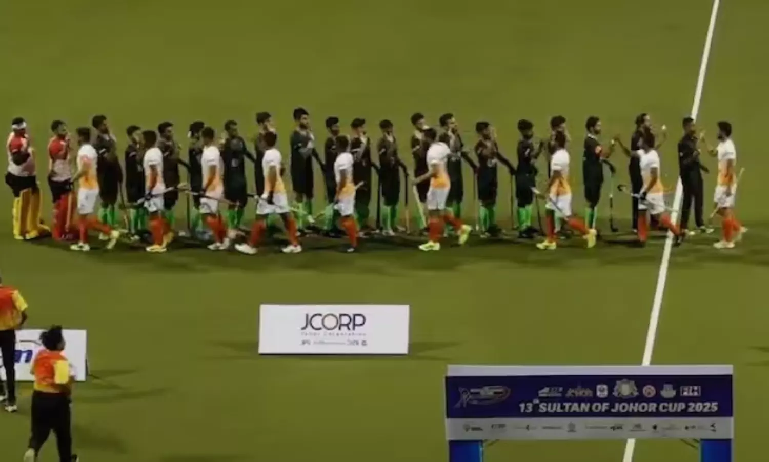 ജോഹോർ ബഹ്റു: ഇന്ത്യ പാകിസ്താൻ അണ്ടർ 21 ഹോക്കി മത്സരത്തിന് മുന്നോടിയായി ഹൈ ഫൈ നൽകി താരങ്ങൾ. മലേഷ്യയിൽ നടക്കുന്ന സുൽത്താൻ ഓഫ് ജോഹോർ കപ്പ് മത്സരത്തിലാണ് സംഭവം. ചൊവ്വാഴ്ച മലേഷ്യയിലെ ജോഹോർ ബഹ്റുവിൽ വെച്ചാണ് മത്സരം നടന്നത്. പഹൽഗാം ഭീകരാക്രമണത്തെ തുടർന്ന് ഇരു രാജ്യങ്ങളും തമ്മയിലുള്ള ബന്ധം സങ്കീർണമായ സാഹചര്യത്തിൽ ഏഷ്യ കപ്പ് ക്രിക്കറ്റിലും, വനിതാ ലോകകപ്പ് മത്സരത്തിലും താരങ്ങൾ ഹസ്തദാനത്തിന് വിസമ്മതിച്ചിരുന്നു. എന്നാൽ അതിലൊരു മാറ്റമാണ് ജോഹോർ ബഹ്റുവിൽ കണ്ടത്.