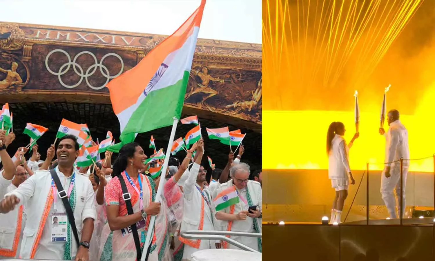 ബാഡ്മിന്റൺ താരം പിവി സിന്ധുവാണ് ഇന്ത്യൻ സംഘത്തിനൊപ്പം പതാകയേന്തിയത്. പാലങ്ങളിൽ, ബഹുനില കെട്ടിടത്തിന് മുകളിൽ തിങ്ങിനിറഞ്ഞ ജനക്കൂട്ടം താരങ്ങളെ അഭിവാദ്യം ചെയ്തു. ആദ്യം ഗ്രീസ്, പിന്നാലെ ദക്ഷിണാഫ്രിക്ക അങ്ങനെ ഓരോ രാജ്യങ്ങളിലെ താരങ്ങളും ബോട്ടിലൂടെ പാരീസ് നഗരഹൃദയത്തിലൂടെ ഒഴുകി.