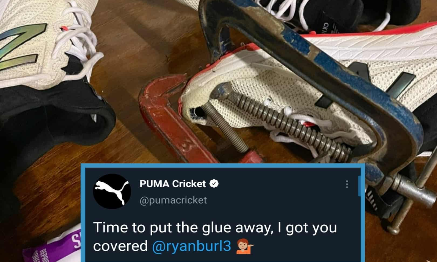 ട്വീറ്റ് സമൂഹമാധ്യമങ്ങൾ ഏറ്റെടുത്തതോടെ ടീമിന്റെ സ്പോൺസർഷിപ്പ് ഏറ്റെടുത്തു രംഗത്തെത്തിയിരിക്കുകയാണ് ലോകോത്തര കായിക ഉപകരണ നിർമാതാക്കളായ പ്യൂമ. പ്യൂമയുടെ ക്രിക്കറ്റ് വിഭാഗമാണ് ട്വിറ്റിലൂടെ തന്നെ സ്പോൺസർഷിപ്പ് വാഗ്ദാനം ചെയ്തിരിക്കുന്നത്. പശ എടുത്തെറിഞ്ഞേക്കൂ, നിങ്ങളെ കാര്യം നമ്മളേറ്റു എന്നായിരുന്നു റയാൻ ബേളിനെ ടാഗ് ചെയ്ത് പ്യൂമ ക്രിക്കറ്റിന്റെ പ്രതികരണം.