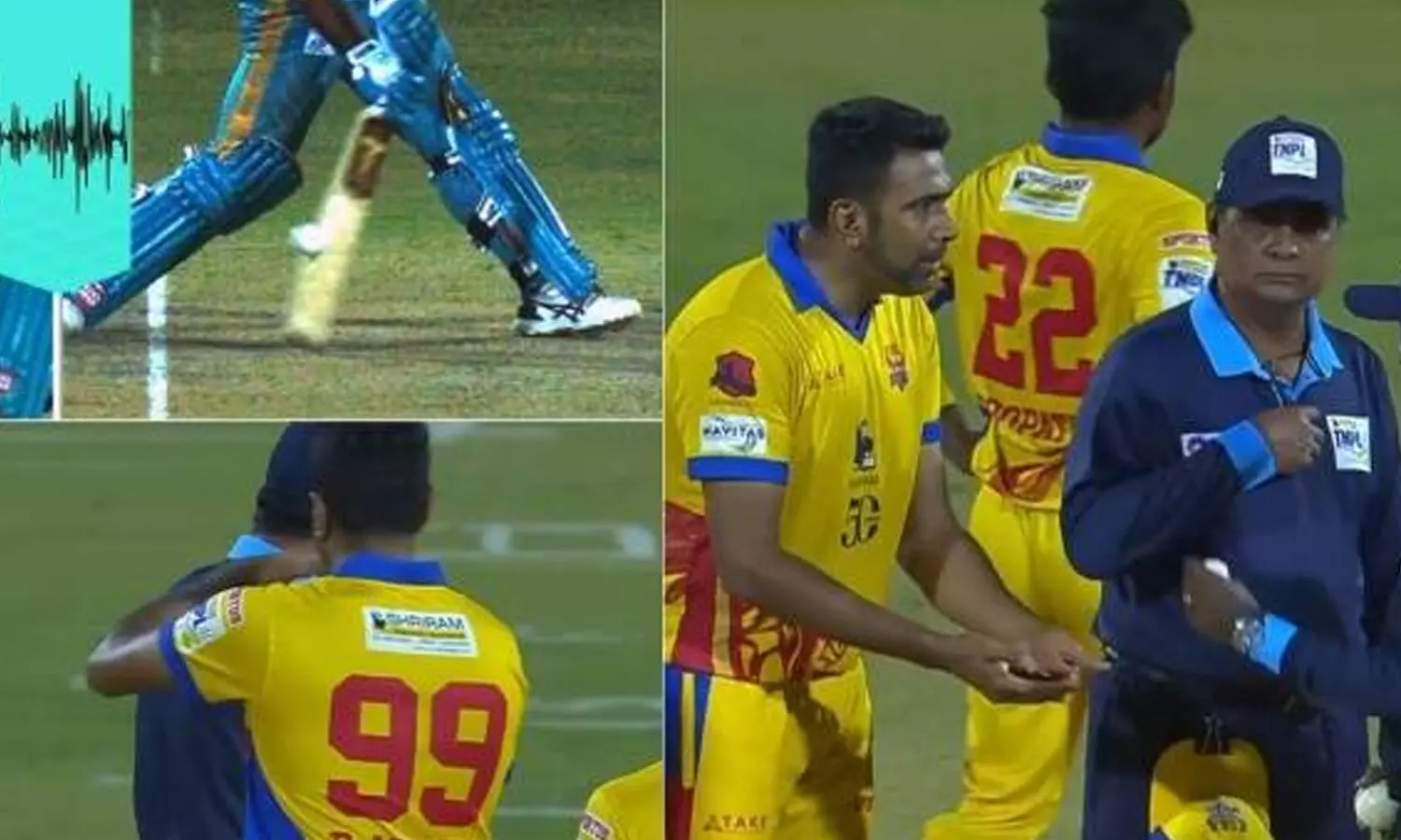മത്സരത്തിലെ 13ാം ഓവർ എറിഞ്ഞത് അശ്വിനായിരുന്നു. ഓവറിലെ അവസാന പന്തിൽ ട്രിച്ചി ബാറ്റർ രാജ്കുമാറിനെ വിക്കറ്റ് കീപ്പർ ക്യാച്ചെടുത്ത് പുറത്താക്കി. എന്നാൽ രാജ്കുമാർ ഡി.ആർ.എസ് പോയതോടെ തേർഡ് അംപയർ തീരുമാനം പുനപ്പരിശോധിച്ച് നോട്ടൗട്ട് വിധിച്ചു. ഇതിന് പിന്നാലെ അശ്വിൻ വീണ്ടും റിവ്യൂവിന് പോയി. വീഡിയോ ദൃശ്യങ്ങൾ തേർഡ് അംപയർ ഒരിക്കൽ കൂടി പരിശോധിച്ചെങ്കിലും നോട്ടൗട്ട് എന്ന് തന്നെയായിരുന്നു വിധി. തുടർന്ന് ഗ്രൗണ്ടിലുണ്ടായിരുന്ന അംപയർമാരുമായി അശ്വിൻ തർക്കിക്കുന്ന ദൃശ്യങ്ങൾ സോഷ്യൽ മീഡിയയിൽ വൈറലാണിപ്പോൾ. പന്ത് ബാറ്റിൽ തട്ടിയെന്ന് വ്യക്തമായിരുന്നു എന്നാണ് ദിണ്ഡിഗൽ താരങ്ങളുടെ വാദം.
