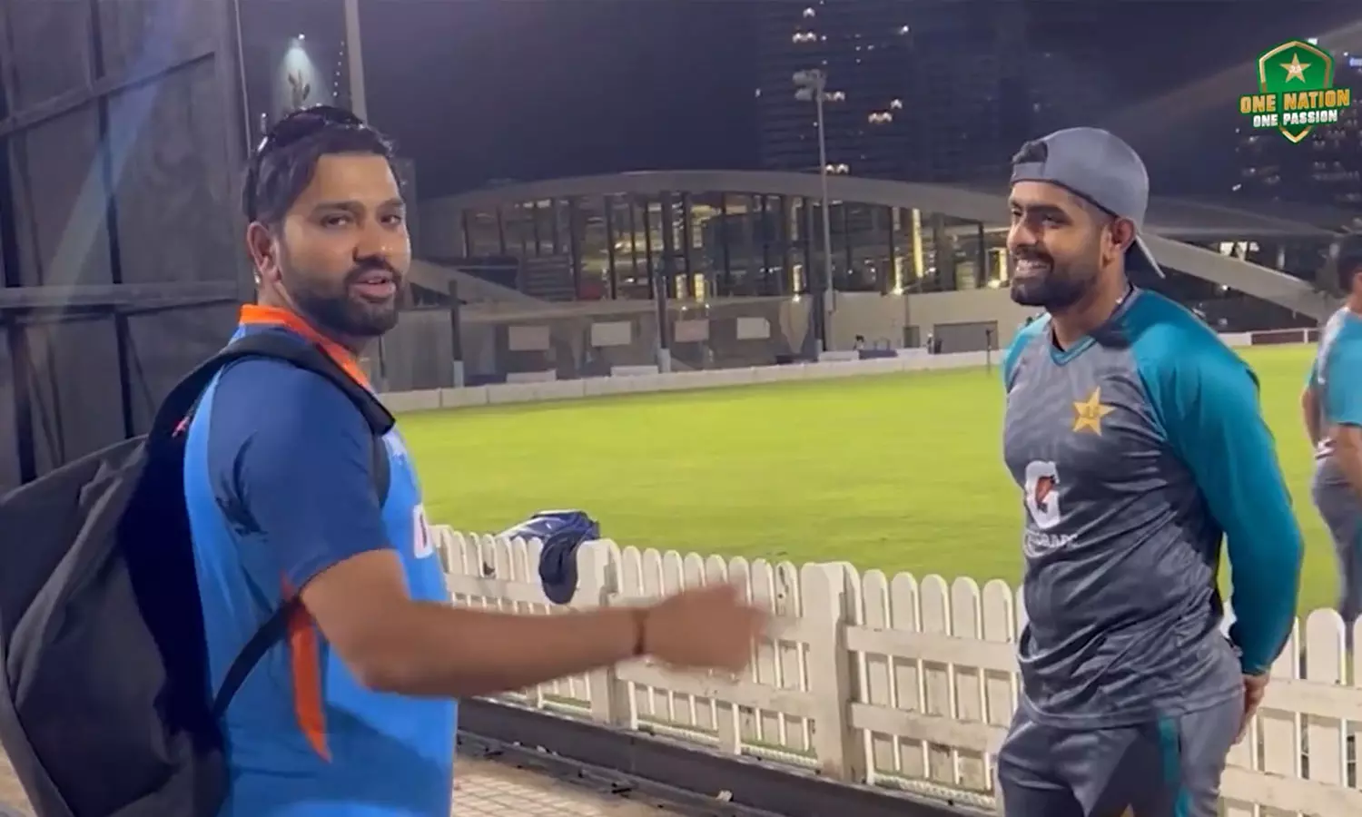 ഇപ്പോൾ ഇന്ത്യൻ ഓപ്പണറും നായകനുമായ രോഹിത് ശർമയും പാക് നായകനായ ബാബർ അസവും സംസാരിക്കുന്ന വീഡിയോയാണ് പുറത്തുവന്നിരിക്കുന്നത്. പാകിസ്താൻ ക്രിക്കറ്റ് ബോർഡ് തങ്ങളുടെ ഔദ്യോഗിക ട്വിറ്റർ അക്കൗണ്ടിലൂടെ ഇരുവരും പരിശീലനത്തിനിടെ സംസാരിക്കുന്ന വീഡിയോ പങ്കുവെച്ചത്.