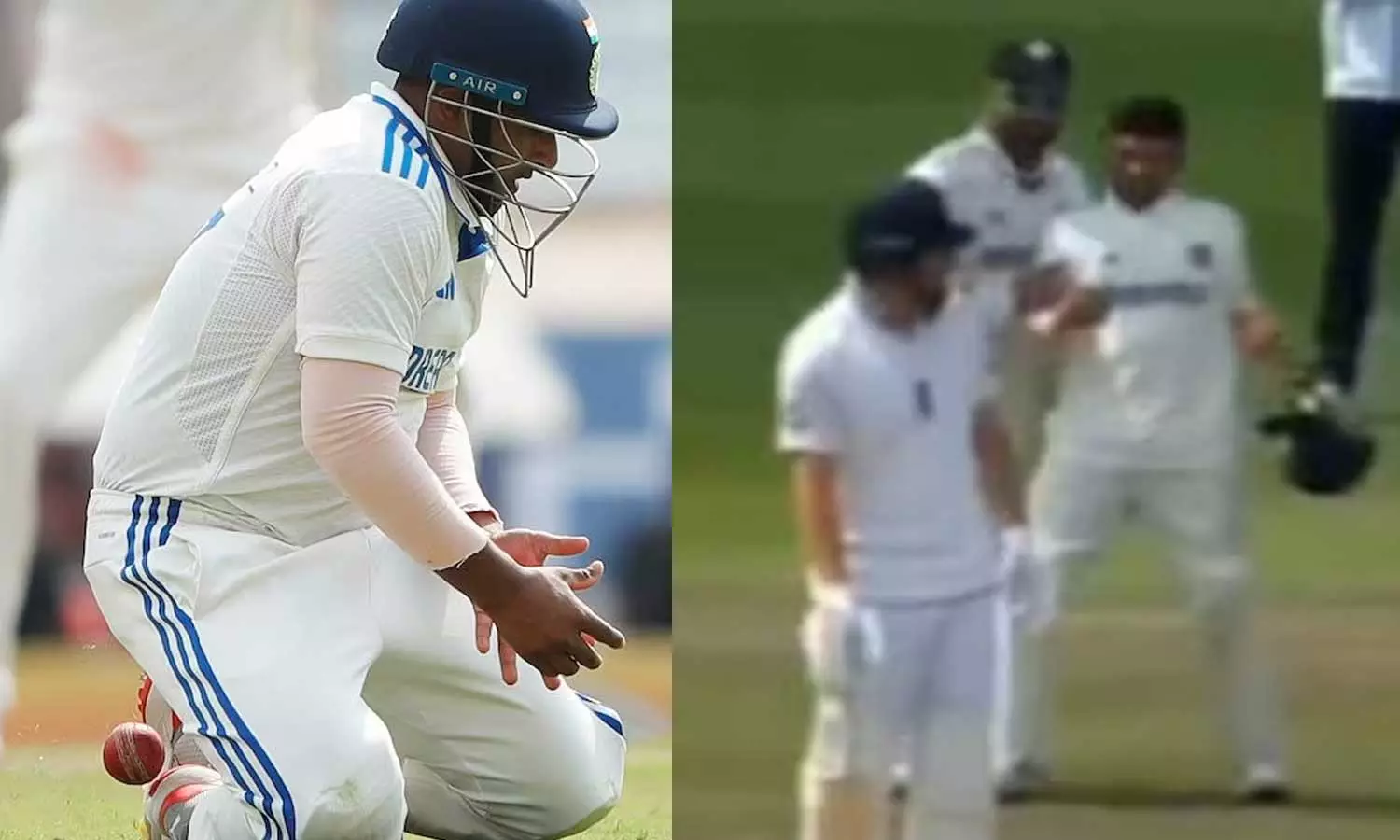 ഇന്ത്യൻ താരങ്ങൾ വിക്കറ്റിനായി അപ്പീൽ ചെയ്തു. പ്രത്യേകിച്ച് സർഫറാസ്. പന്ത് ബാറ്റിലാണോ പാഡിലാണോ കൊണ്ടത് എന്ന ആശയക്കുഴപ്പത്തിലായിരുന്നു അമ്പയര്. എന്നാല് പന്ത് ബാറ്റിൽ കൊണ്ടെന്ന് ഉറപ്പായിരുന്നു സർഫറാസിന്.
