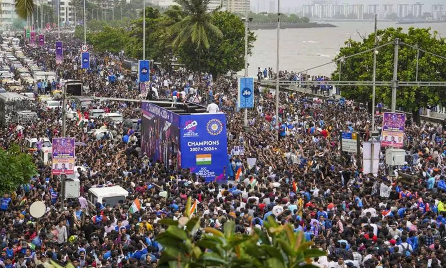 വീരനായകർക്ക് വന് വരവേൽപ്പ്; മുംബൈയിൽ ജനസാഗരം