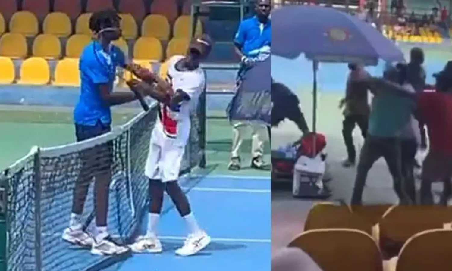 പാരീസിൽ. ജൂനിയർ ടെന്നീസ് മത്സരത്തിനിടെയാണ് സമൂഹമാധ്യമങ്ങളിൽ വൈറലായ ആ അടി നടന്നത്. ഫ്രാൻസിന്റെ മൈക്കൽ കൗമ, ഘാനയുടെ റാഫേൽ നി അങ്കാര എന്നിവർ തമ്മിലായിരുന്നു മത്സരം.