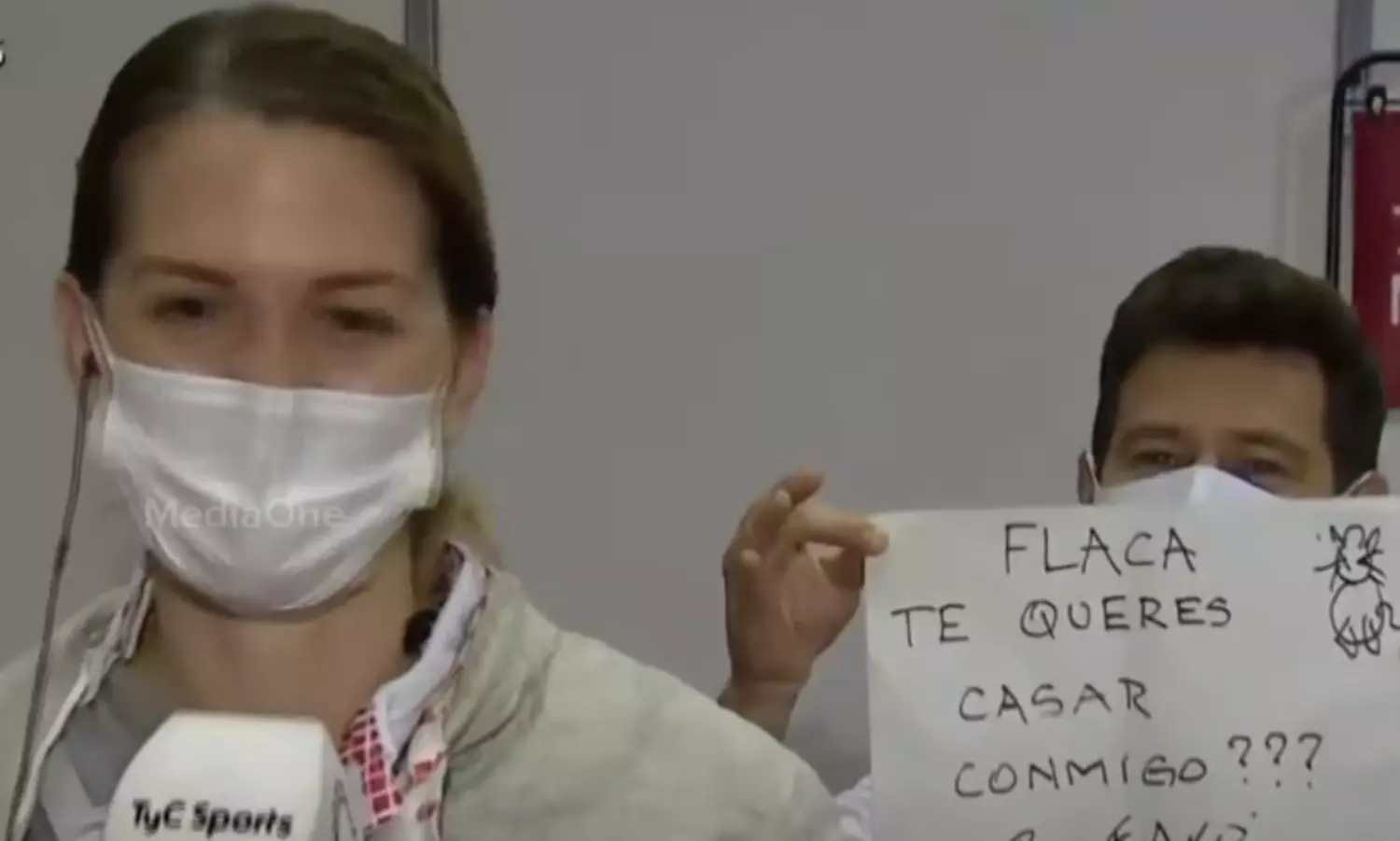 തോൽവിയുടെ നിരാശയിൽ മാധ്യമപ്രവർത്തകനോട് സംസാരിക്കുകയായിരുന്നു മരിയ ബെലൻ പെരസ്. സംസാരത്തിനിടയിൽ പെരസിനെതേടി പരിശീലകൻ ലൂക്കാസ് ഗല്ലേർമ എത്തി. ആശ്വാസവാക്ക് പറയാനോ സ്വാന്തനപ്പെടുത്താനോ ഒന്നുമായിരുന്നില്ല. തന്നെ വിവാഹം ചെയ്യുമോയെന്ന് ആശാൻ പേപ്പറിലെഴുതി ക്യാമറയ്ക്ക് പിന്നിൽ കാണിച്ചു.