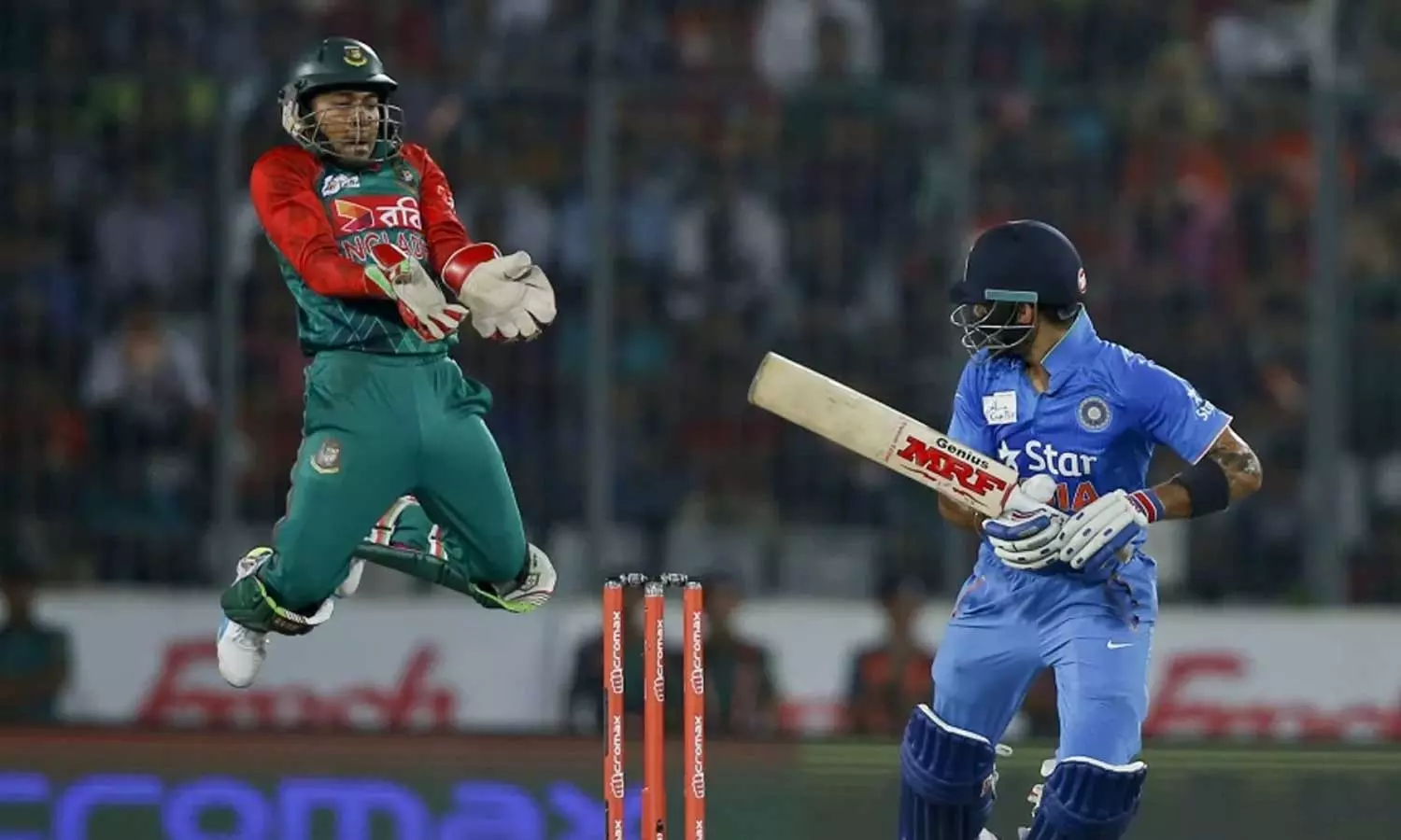 ഇന്ത്യൻ താരം വിരാട് കോഹ്ലിയെ താൻ ഒരിക്കലും കളിക്കിടെ പ്രകോപിപ്പിക്കാറില്ലെന്ന് ബംഗ്ലാദേശ് വിക്കറ്റ് കീപ്പർ ബാറ്റർ മുശ്ഫിഖു റഹീം. കോഹ്ലി താൻ ബാറ്റ് ചെയ്യാൻ എത്തുമ്പോഴൊക്കെ സ്ലെഡ്ജ് ചെയ്യാറുണ്ടെന്നും എന്നാൽ താൻ അങ്ങനെ തിരിച്ച് ചെയ്താൽ അത് വലിയ ദുരന്തമായിപ്പോകുമെന്നും മുഷ്ഫിഖ് സ്റ്റാർ സ്പോർട്സിനോട് പറഞ്ഞു.