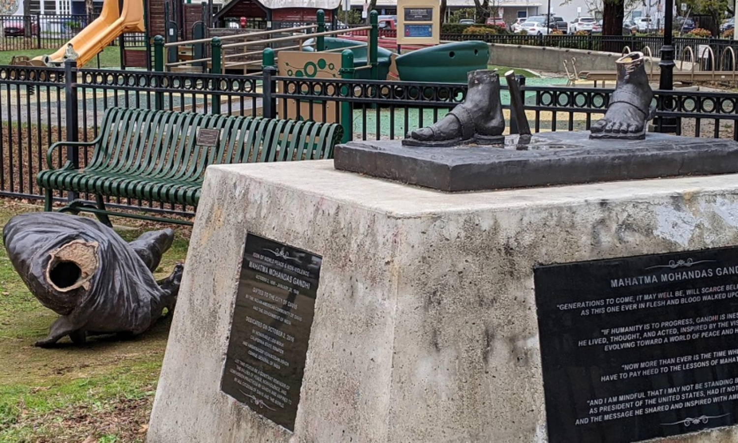 ഗാന്ധിയുടെ പ്രതിമ അജ്ഞാതർ തകർത്തു; പ്രതിഷേധവുമായി യു.എസിലെ ഇന്ത്യൻ വംശജർ