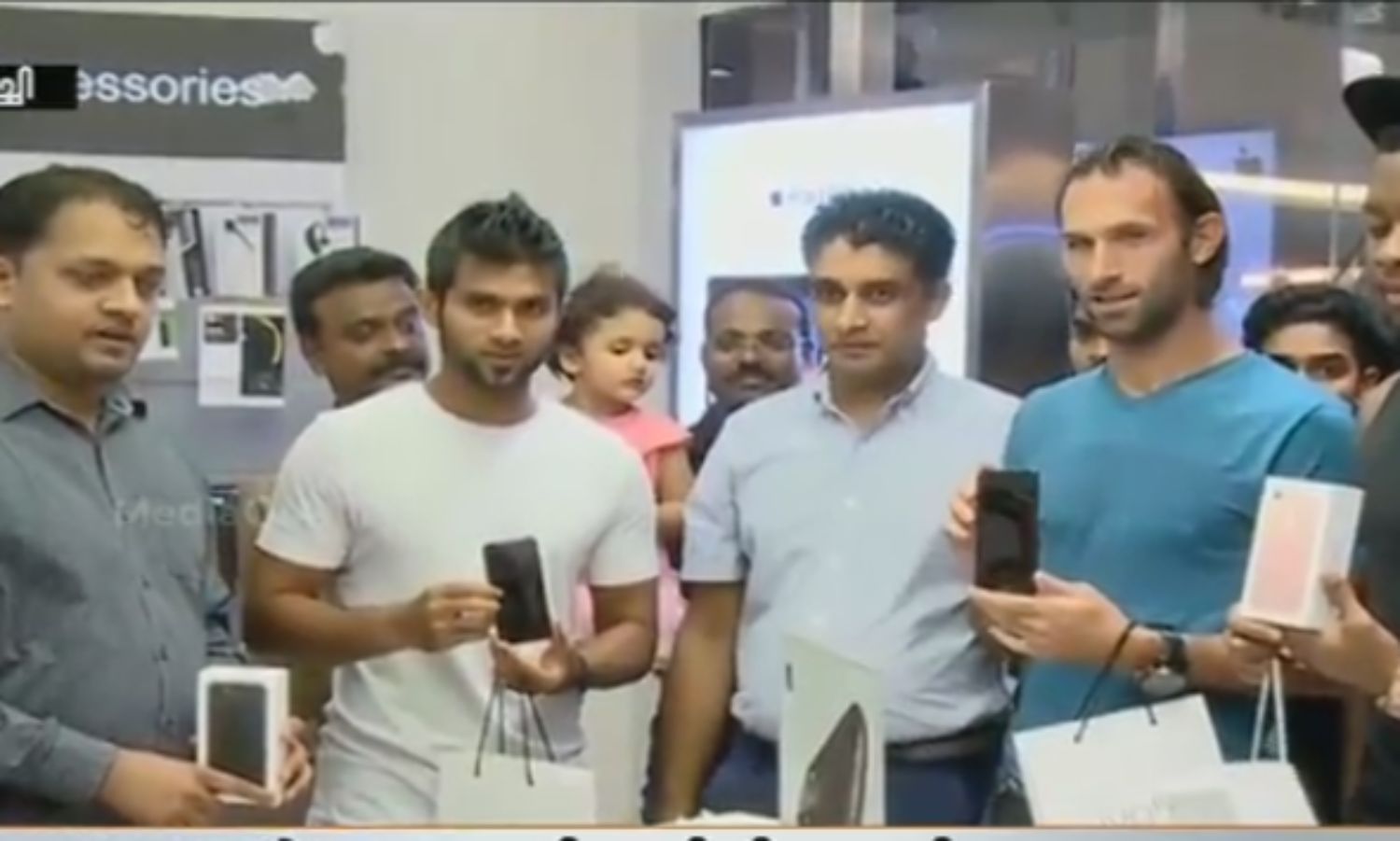 ആരാധകര് തിങ്ങി നിറഞ്ഞ ചടങ്ങില് വെച്ചാണ് കേരള ബ്ലാസ്റ്റേഴ്സ് താരങ്ങള് ഐഫോണ് 7 പുറത്തിറക്കിയത്. ബ്ലാസ്റ്റേഴ്സ് നായകന് ഹെങ്ബര്ട്ട്, ജെര്മന്, മലയാളി താരം മുഹമ്മദ് റാഫി, ഇഷ്ഫാക്ക് അഹമ്മദ് എന്നിവര് ചേര്ന്നായിരുന്നു ഫോണ് പുറത്തിറക്കിയത്. ആപ്പിളിന്റെ കേരളത്തിലെ ഔദ്യോഗിക വില്പ്പനക്കാരായ ഇവോള്വാണ് ഫോണ് വിപണിയിലെത്തിച്ചത്.