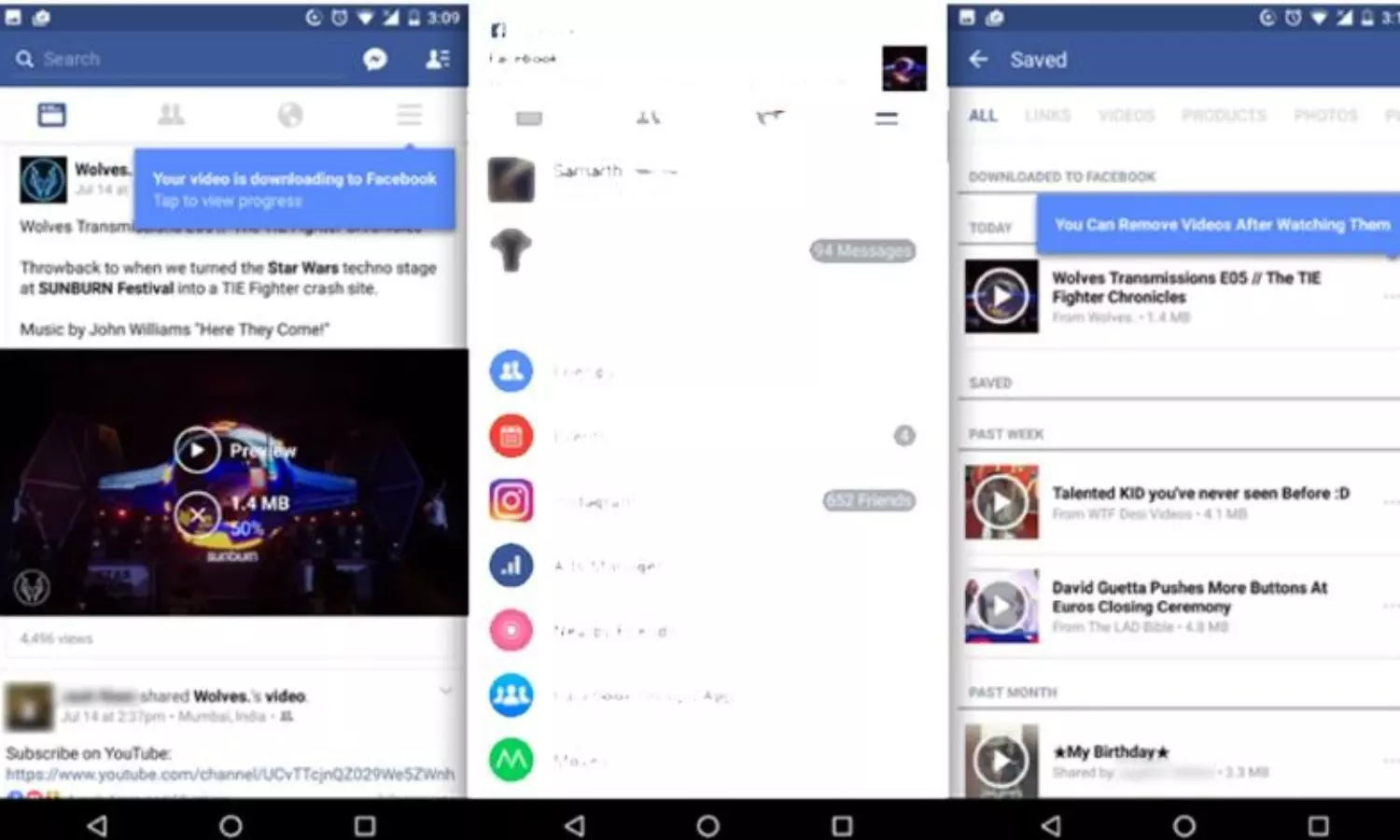 ഗൂഗിളിന്റെ വീഡിയോ ഷെയറിങ് വെബ്സൈറ്റായ യുട്യൂബ് അവതരിപ്പിച്ച ഓഫ്ലൈന് സംവിധാനം ഇനി ഫേസ്ബുക്കും അവതരിപ്പിച്ചു.