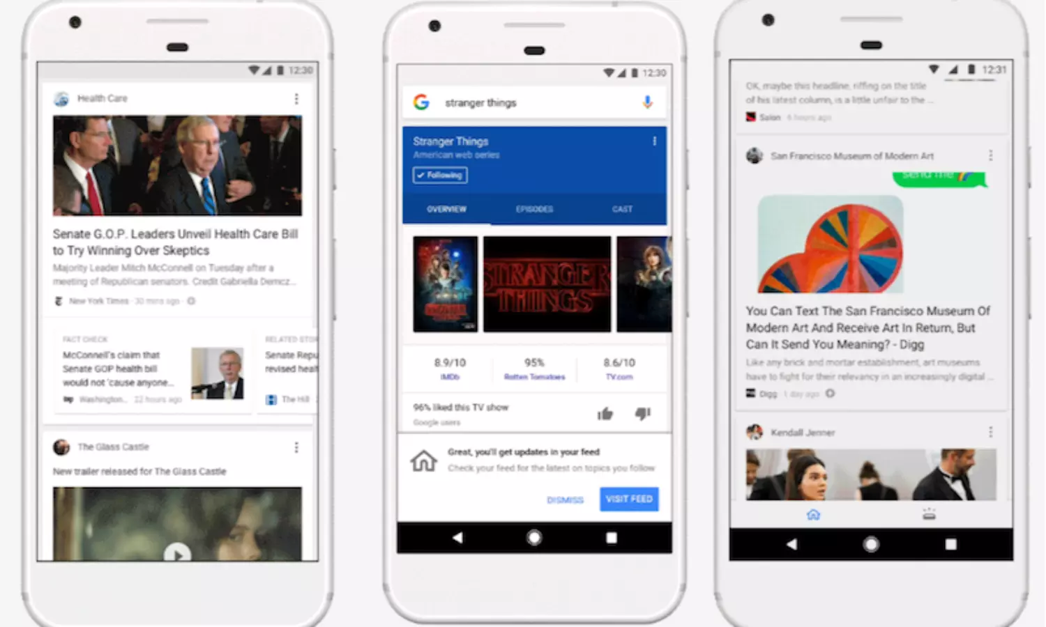 പ്രധാന വാര്ത്തകള്, ലേഖനങ്ങള്, വീഡിയോകള് തുടങ്ങിയവ അവയുടെ ജനപ്രീതി അനുസരിച്ച് ഹോം പേജില് പ്രത്യക്ഷപ്പെടും. ഒറ്റ ക്ലിക്കിലൂടെ അവയുടെ വിശദാംശങ്ങളിലേക്ക് ഉപഭോക്താക്കള്ക്ക് എത്താനാകും. ഫോളോ എന്ന ഓപ്ഷന് കൂടി നല്കിയാണ് രൂപമാറ്റം. താത്പര്യമുള്ളതെന്ന് തോന്നുന്ന വിവരങ്ങളില് ഫോളോ ചെയ്താല് തുടര്ന്നുള്ള വാര്ത്തകളും വിവരങ്ങളും ഗൂഗിള് ഓട്ടോ അപ്ഡേറ്റ് ചെയ്യും.