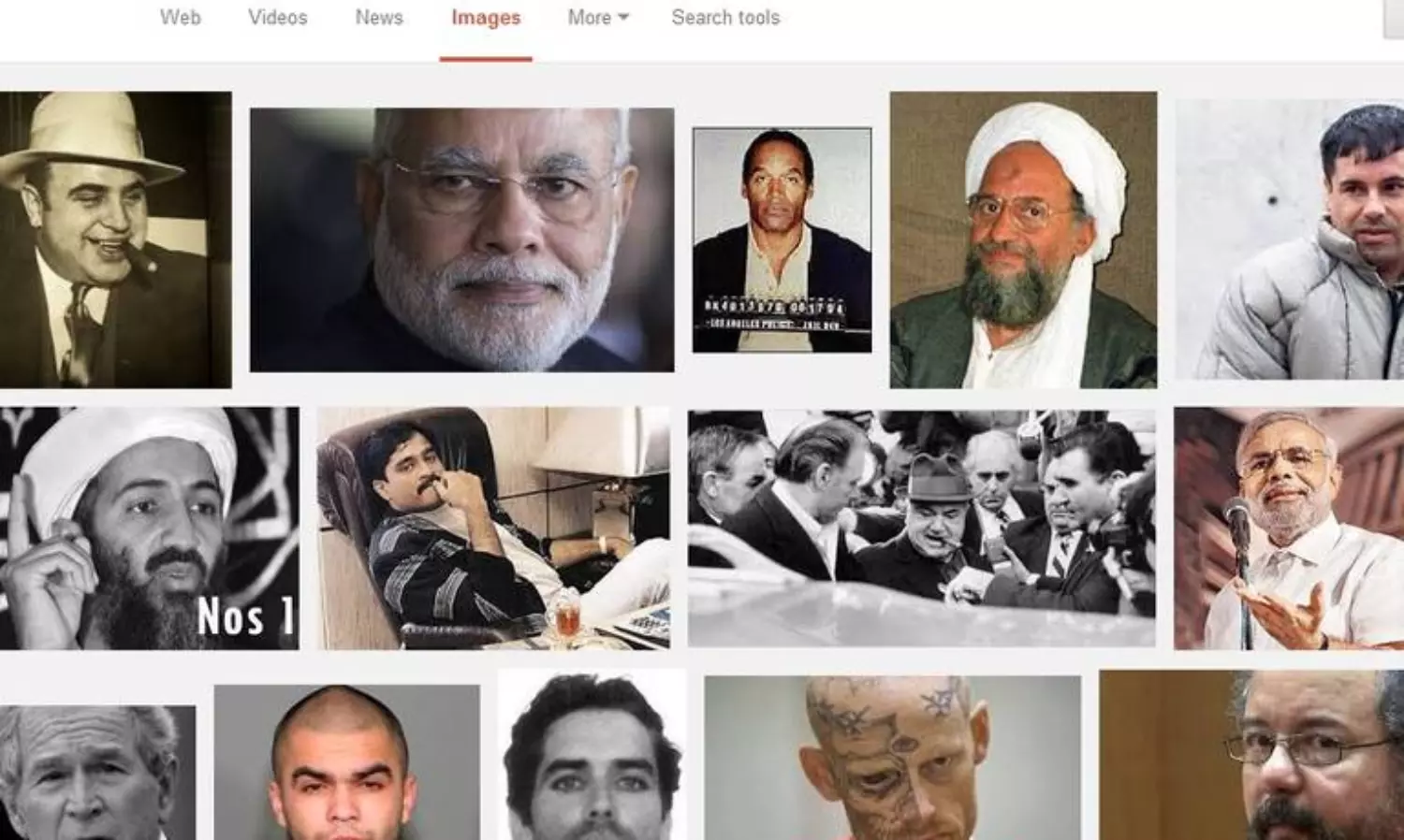 ക്രിമിനല് പട്ടികയില് മോദിയുടെ ഫോട്ടോ വരുന്നത് നേരത്തെ വിവാദമായിരുന്നു. ഇതേതുടര്ന്ന് ഗൂഗിള് ഔദ്യോഗികമായി മാപ്പപേക്ഷിക്കുകയും ചെയ്തിരുന്നു. സെര്ച്ചില് വരുന്ന ഫലങ്ങള് ഗൂഗിളിന്റെ നയങ്ങളല്ലെന്നും ഗൂഗിളിന്റെ അല്ഗോരിതം സ്വയമേവയാണ് തെരച്ചലിന് ഉപയോഗിച്ച പദത്തോട് സമാനമായ ഫോട്ടോകള് തെരഞ്ഞെടുക്കുന്നതെന്നും കമ്പനി വ്യക്തമാക്കുകയും ചെയ്തിരുന്നു. ഇത്തരത്തിലുള്ള തെറ്റായ വിവരങ്ങള് നല്കുന്നത് പരമാവധി ഒഴിവാക്കാന് തങ്ങളുടെ അല്ഗോരിതത്തില് മാറ്റങ്ങള് വരുത്തികൊണ്ടിരിക്കുകയാണെന്ന് ഗൂഗിള് അറിയിച്ചിരുന്നെങ്കിലും കുറ്റവാളികളുടെ പട്ടികയില് മോദിയുടെ ചിത്രം വരുന്നത് തുടരുകയാണ്. ഉസാമ ബിന് ലാദന്, ദാവൂദ് ഇബ്രാഹിം തുടങ്ങിയവര്ക്കൊപ്പമാണ് മോദിയുടെ ചിത്രവും വരുന്നത്.