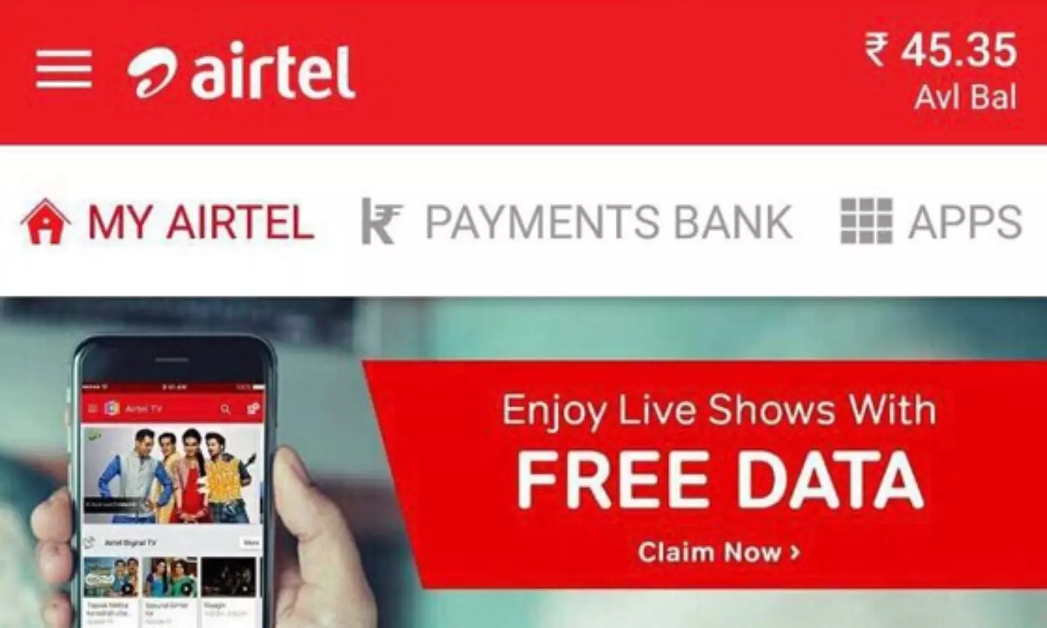 ഈ ഓഫര് ലഭിക്കാന് യാതൊരു തരത്തിലുമുള്ള റീച്ചാര്ജുകളും ആവശ്യമില്ല. എയര്ടെല് ടിവി ആപ് ഡൌണ്ലോഡ് ചെയ്ത് ഇന്സ്റ്റാള് ചെയ്താല് മാത്രം മതി. എയര്ടെല് ടിവി ആപ് നിങ്ങളുടെ ഫോണില് ഇന്സ്റ്റാള് ചെയ്തു കഴിഞ്ഞാല് 24 മണിക്കൂറിനുള്ള സൗജന്യ ഡാറ്റ അക്കൌണ്ടിലെത്തും. എന്നാല് മറ്റൊരു കാര്യം പ്രത്യേകം ശ്രദ്ധിക്കണം. ഗൂഗിള് പ്ലേ സ്റ്റോറില് നിന്ന് നേരിട്ട് എയര്ടെല് ടിവി ആപ് ഡൌണ്ലോഡ് ചെയ്താല് മാത്രം ഈ ഓഫറിന് യോഗ്യത ലഭിക്കില്ല. അതിന് മൈ എയര്ടെല് ആപ് ഉപയോഗിക്കണം. മൈ എയര്ടെല് ആപിലെ 60 ജിബി ഡാറ്റ ഫ്രീ ഓഫര് ബാനറില് ക്ലിക്ക് ചെയ്ത് വേണം പ്ലേ സ്റ്റോറില് നിന്നും ടിവി ആപ് ഡൌണ്ലോഡ് ചെയ്യാന്. ഒരു മാസം അവശേഷിക്കുന്ന ഡാറ്റ അടുത്ത മാസത്തെ അക്കൌണ്ടിലേക്ക് കൂട്ടിച്ചേര്ക്കാന് കഴിയുന്ന സൌകര്യം എയര്ടെല് പോസ്റ്റ്പെയ്ഡ് ഉപഭോക്താക്കള്ക്കായി നേരത്തെ അവതരിപ്പിച്ചിരുന്നു.