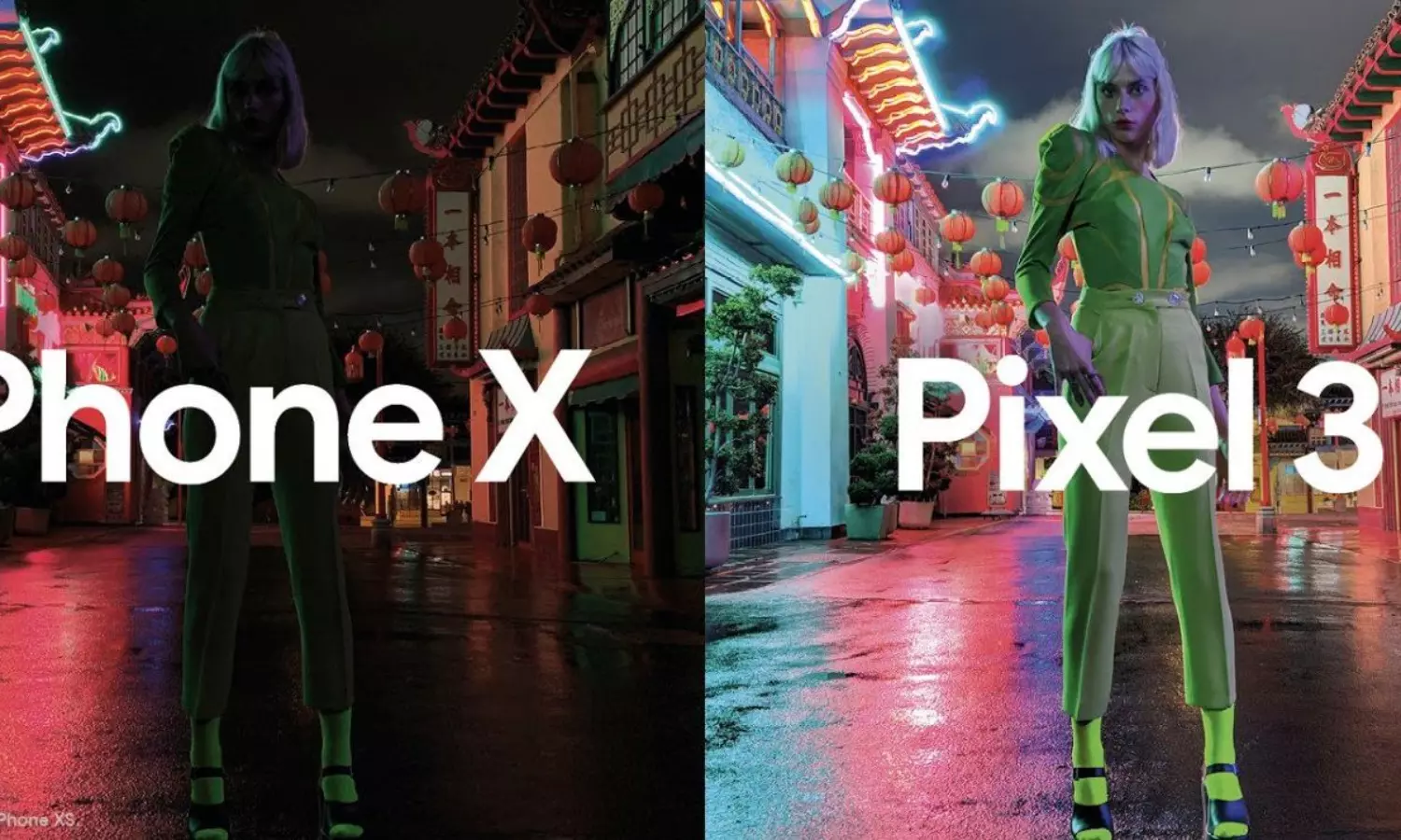 ഗൂഗിള് ഗ്ലോബല് മാര്ക്കറ്റിങ് വൈസ് പ്രസിഡന്റ് മാര്വിന് ചോയാണ് പിക്സല് 3യിലും ഐഫോണിലും എടുത്ത ഫോട്ടോ ട്വീറ്റ് ചെയ്തിരിക്കുന്നത്.ആപ്പിള് മോഡലിന്റെ പേര് എടുത്ത് പറയുന്നില്ലെങ്കിലും ചോ ഉപയോഗിച്ചിരിക്കുന്നത് ഫോണ് എക്സ് എന്നാണ്(ഇത് ഐഫോണിന്റെ ടെന് എസ് ആണെന്ന് വ്യക്തം). രാത്രിയില് ഒരു പെണ്കുട്ടി നില്ക്കുന്ന ഫോട്ടോയാണ് ഉപയോഗിച്ചിരിക്കുന്നത്. പിക്സല് 3യിലെ ചിത്രത്തിന് നല്ല വ്യക്തതയുണ്ട്. എന്നാല് ടെന് എസില് ചിത്രത്തിന് ഇരുണ്ട അവസ്ഥയാണ്. ഐഫോണിനെക്കാളും തങ്ങളുടെ ക്യാമറക്കാണ് (പ്രത്യേകിച്ച് നൈറ്റ് സൈറ്റിന്) മികച്ച വ്യക്തതയും നിലവാരവും എന്ന് അവകാശപ്പെടുകയാണ് ഈ ചിത്രത്തിലൂടെ.