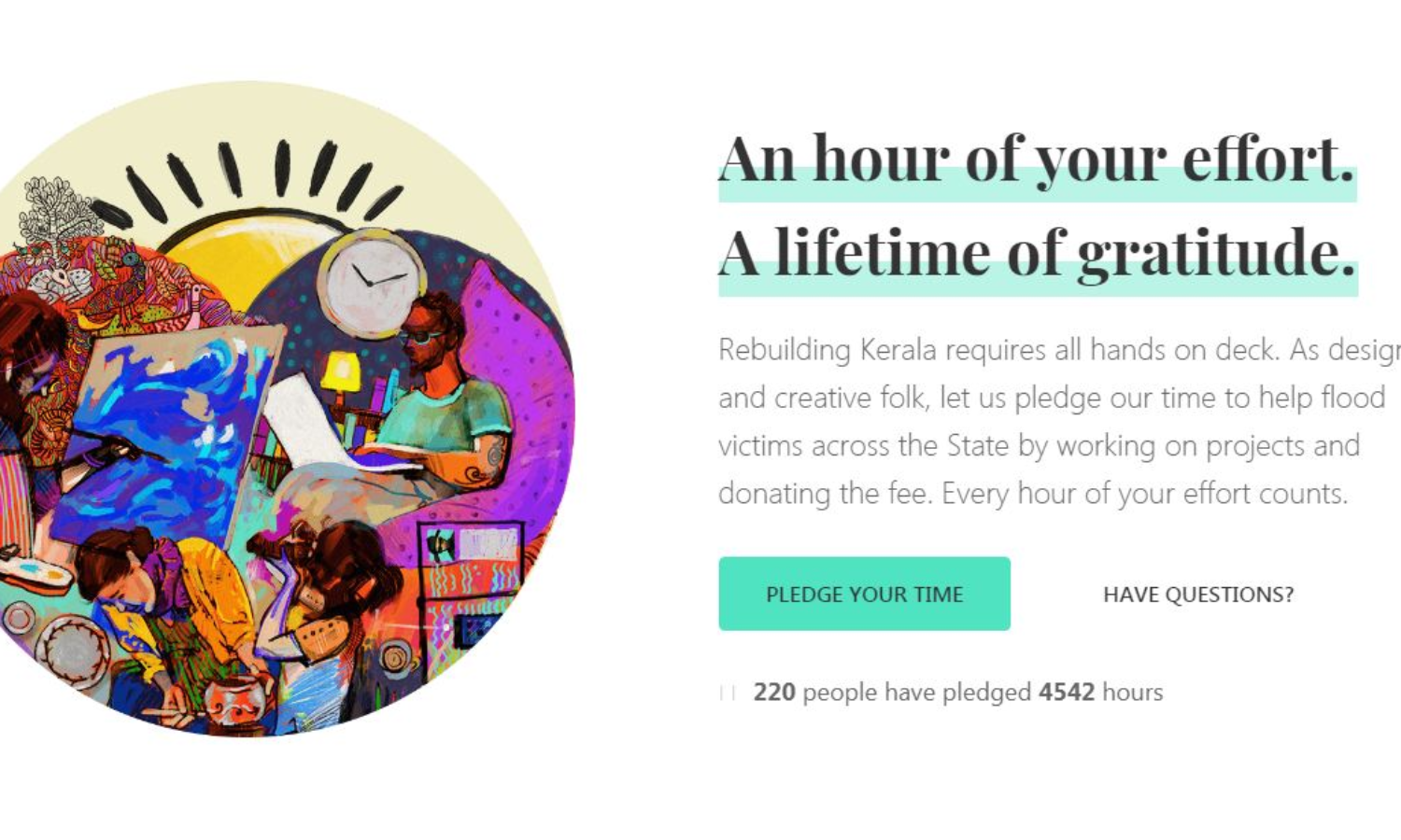 ഡിസൈനർമാർക്ക് പരിചയപ്പെടാനും, സംവദിക്കുവാനും, ആശയ വിനിമയത്തിനുമായുള്ള ഒരു കൂട്ടായ്മയാണ് കെഡി.കോ (kdco) അഥവാ കേരള ഡിസൈനേഴ്സ് കൊളാബറേറ്റീവ്. ഇവരാണ് ഈ പുതിയ ആശയത്തിന് പിന്നില്. നിങ്ങളുടെ ഒരു മണിക്കൂര് പരിശ്രമത്തിന് ഒരു ജീവിതകാലത്തിന്റെ കൃതജ്ഞതയുണ്ടാകുമെന്ന ടാഗ് ലൈനോടെയാണ് കേരളത്തിന് കൈത്താങ്ങാവാന് കെഡി.കോ മുന്നോട്ട് വന്നിരിക്കുന്നത്. https://kdco.info/skillforkerala/ എന്ന സൈറ്റിലൂടെ നിങ്ങള്ക്ക് നിങ്ങളുടെ സമയം ദുരിതാശ്വാസത്തിനായി വിനിയോഗിക്കാം. ഒന്നോ രണ്ടോ മണിക്കൂര് നിങ്ങള്ക്ക് ദുരിതാശ്വാസത്തിനായി മാറ്റിവെക്കാന് കഴിയുമെങ്കില് സൈറ്റില് ആ വിവരം നല്കാം. ശേഷം നിങ്ങളുടെ സേവനം ആവശ്യമുള്ളവര്ക്കായി നല്കണം. തുടര്ന്ന് ജോലിയുടെ പ്രതിഫലം മുഖ്യമന്ത്രിയുടെ ദുരിതാശ്വാസനിധിയിലേക്ക് തൊഴില്ദാതാവ് നേരിട്ട് അടക്കുന്ന രീതിയിലാണ് സംവിധാനം ഒരുക്കിയിരിക്കുന്നത്.