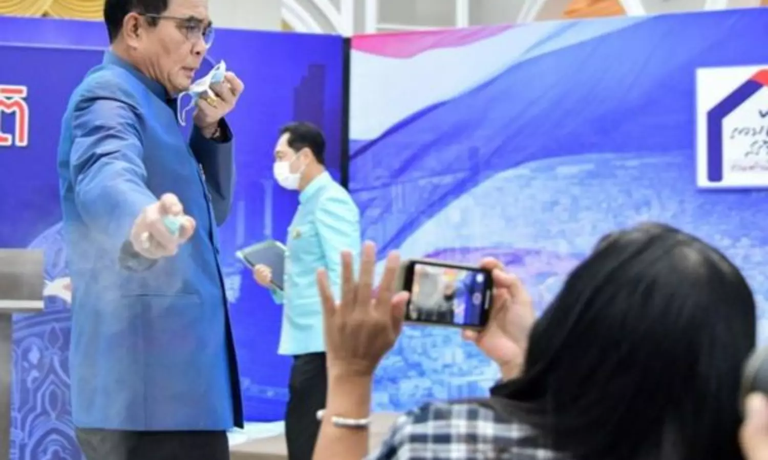 ചോദ്യം പ്രകോപിപ്പിച്ചു; മാധ്യമപ്രവർത്തകർക്ക് നേരെ സാനിറ്റൈസർ തളിച്ച് തായ് പ്രധാനമന്ത്രി
