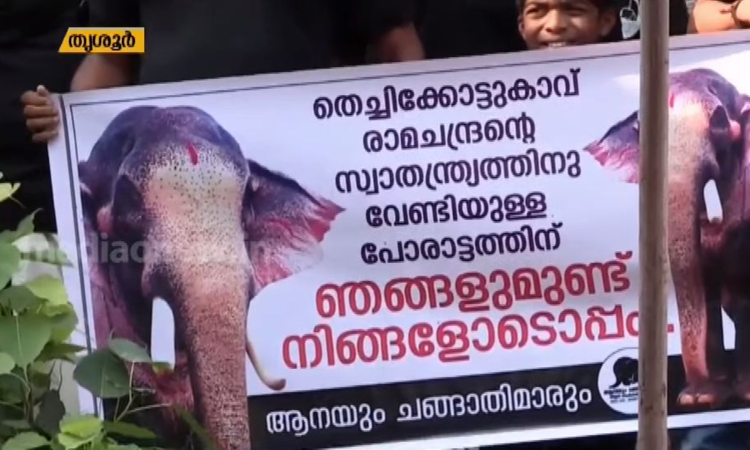 ഇടയല് സ്ഥിരം ഏര്പ്പാടാക്കിയപ്പോള് വനം വിലക്ക് ആജീവനാന്ത വിലക്കെന്ന നോട്ടീസ് അടിച്ചു കൊടുത്തു ഈ കരിവീരന്. പക്ഷെ, തെച്ചിക്കോട്ട് കാവ് രാമചന്ദ്രന് ഇപ്പോഴും താരം തന്നെ... തെരഞ്ഞെടുപ്പ് ചൂടിനിടയിലും സ്ഥാനാര്ത്ഥികള്പോലും രാമചന്ദ്രന് വേണ്ടി സമയം കണ്ടെത്തുന്നു. ഇന്നലെ തൃശൂരില് തെച്ചിക്കോട്ട് കാവ് രാമചന്ദ്രന് നീതി നല്കണമെന്ന് ആവശ്യപ്പെട്ട് നടന്ന പ്രതിഷേധ കൂട്ടായ്മയിലേക്ക് ഒഴുകിയെത്തിയത് നൂറ് കണക്കിന് പേര്.